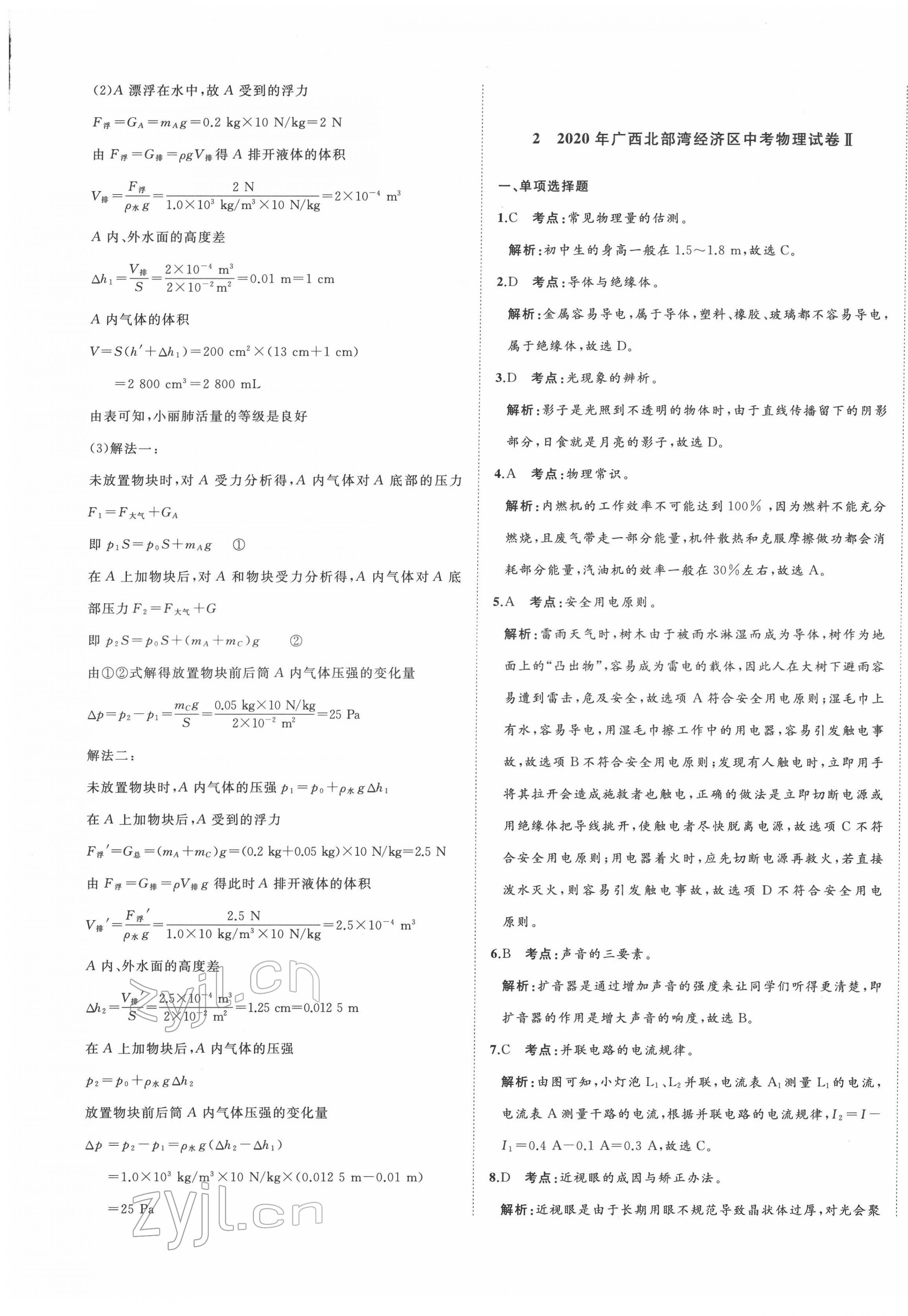 2022年中考备考指南广西2年真题1年模拟试卷物理人教版