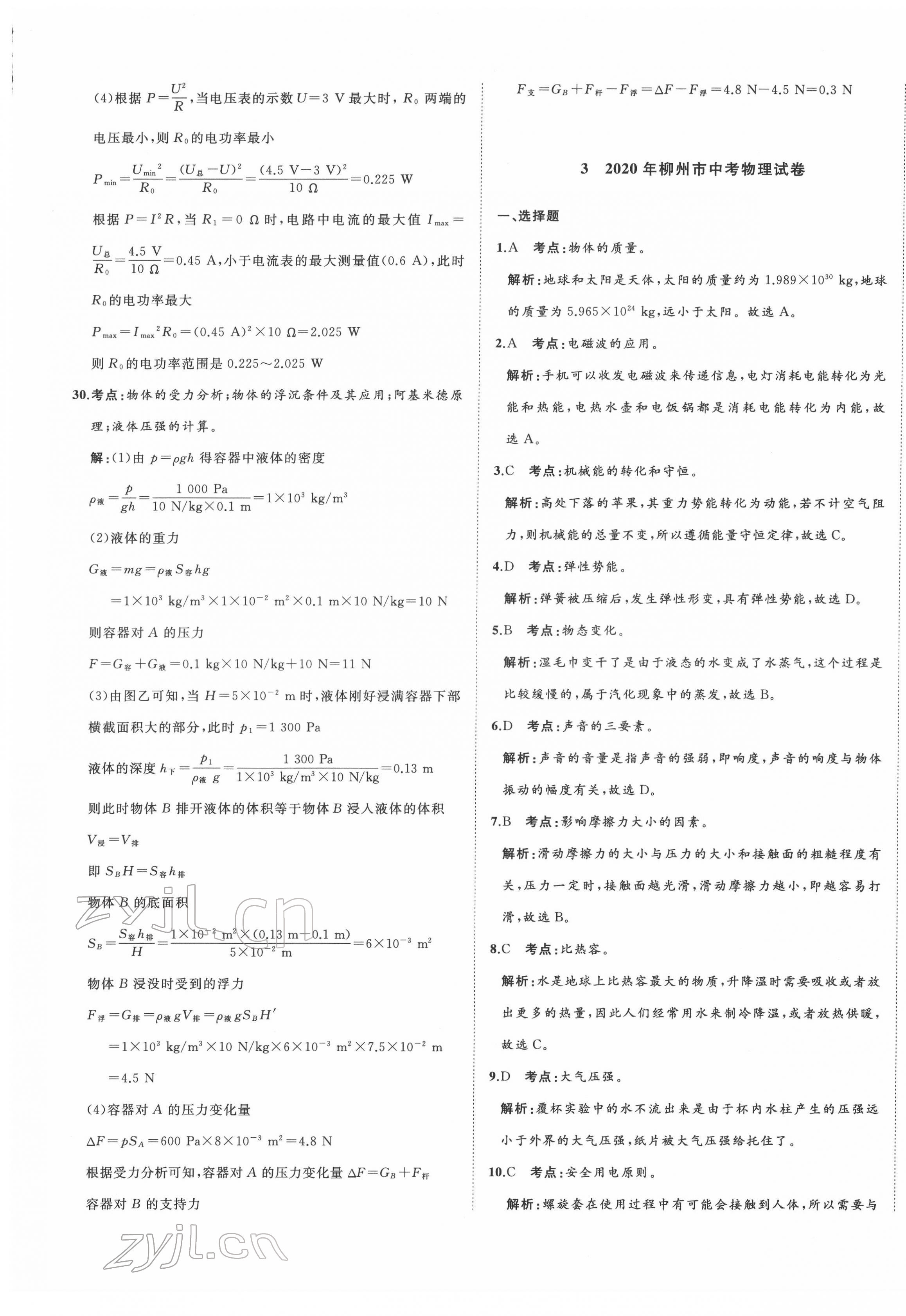 2022年中考备考指南广西2年真题1年模拟试卷物理人教版