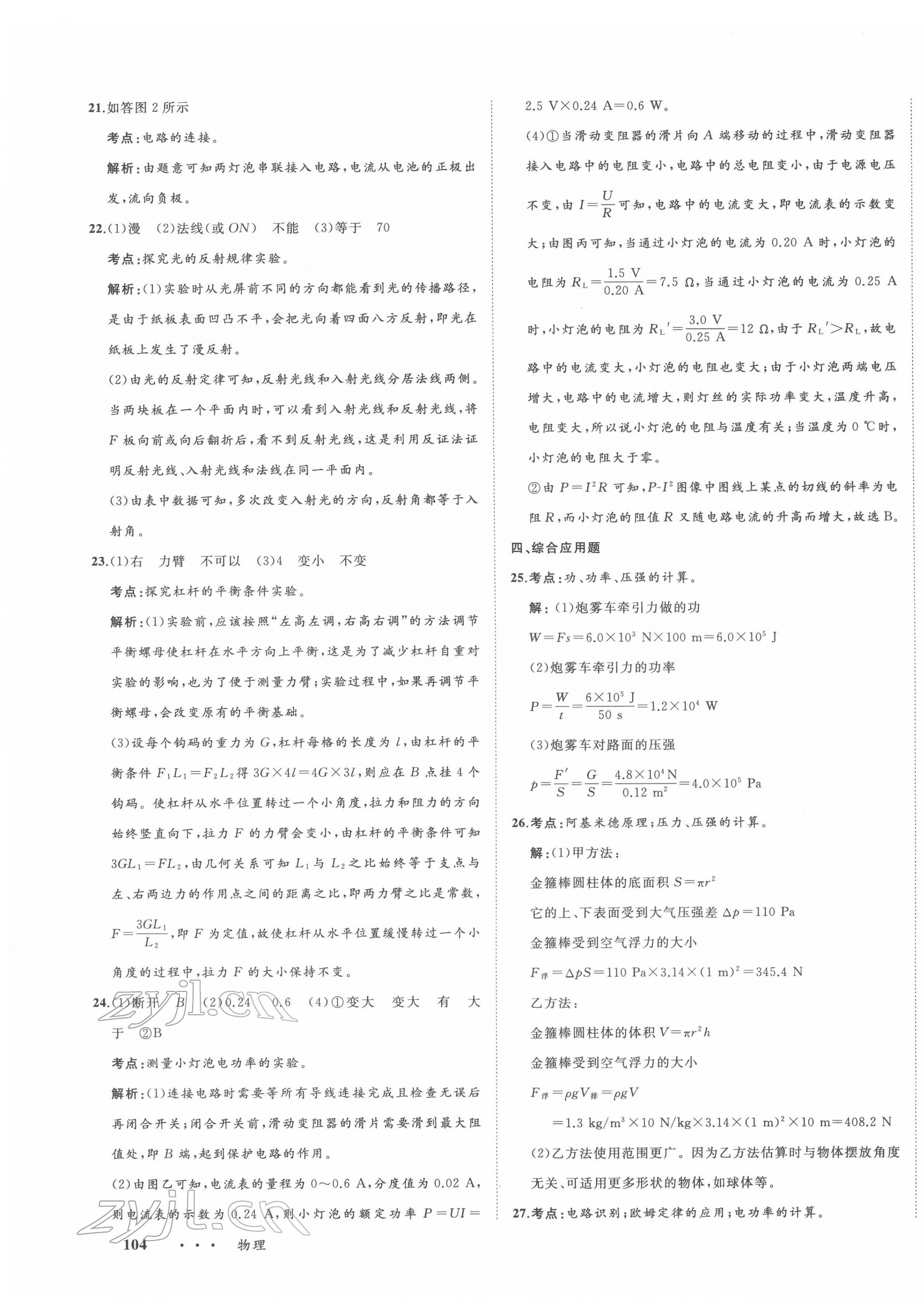 2022年中考备考指南广西2年真题1年模拟试卷物理人教版