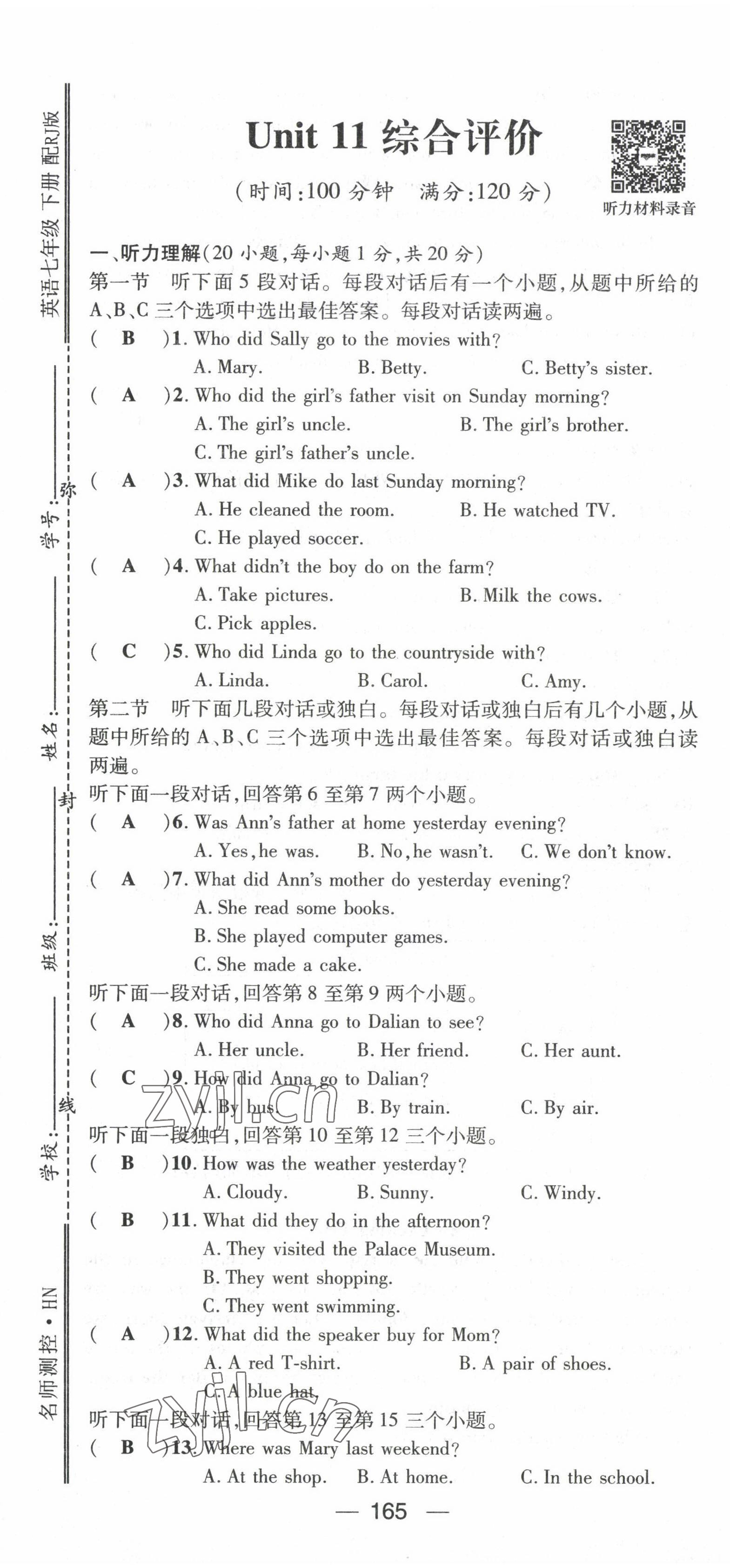 注:目前有些书本章节名称可能整理的还不是很完善,但都是按照顺序排列的,请同学们按照顺序仔细查找。练习册 2022年名师测控七年级英语下册人教版河南专版 答案主要是用来给同学们做完题方便对答案用的,请勿直接抄袭。