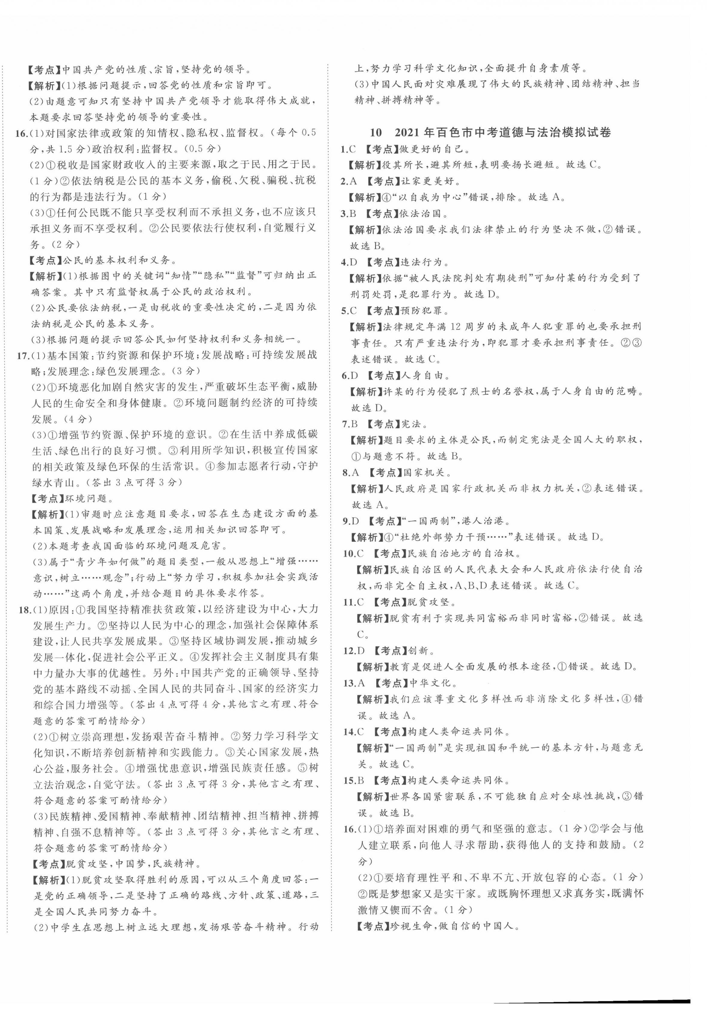 2022年中考备考指南广西2年真题1年模拟试卷道德与法治人教版