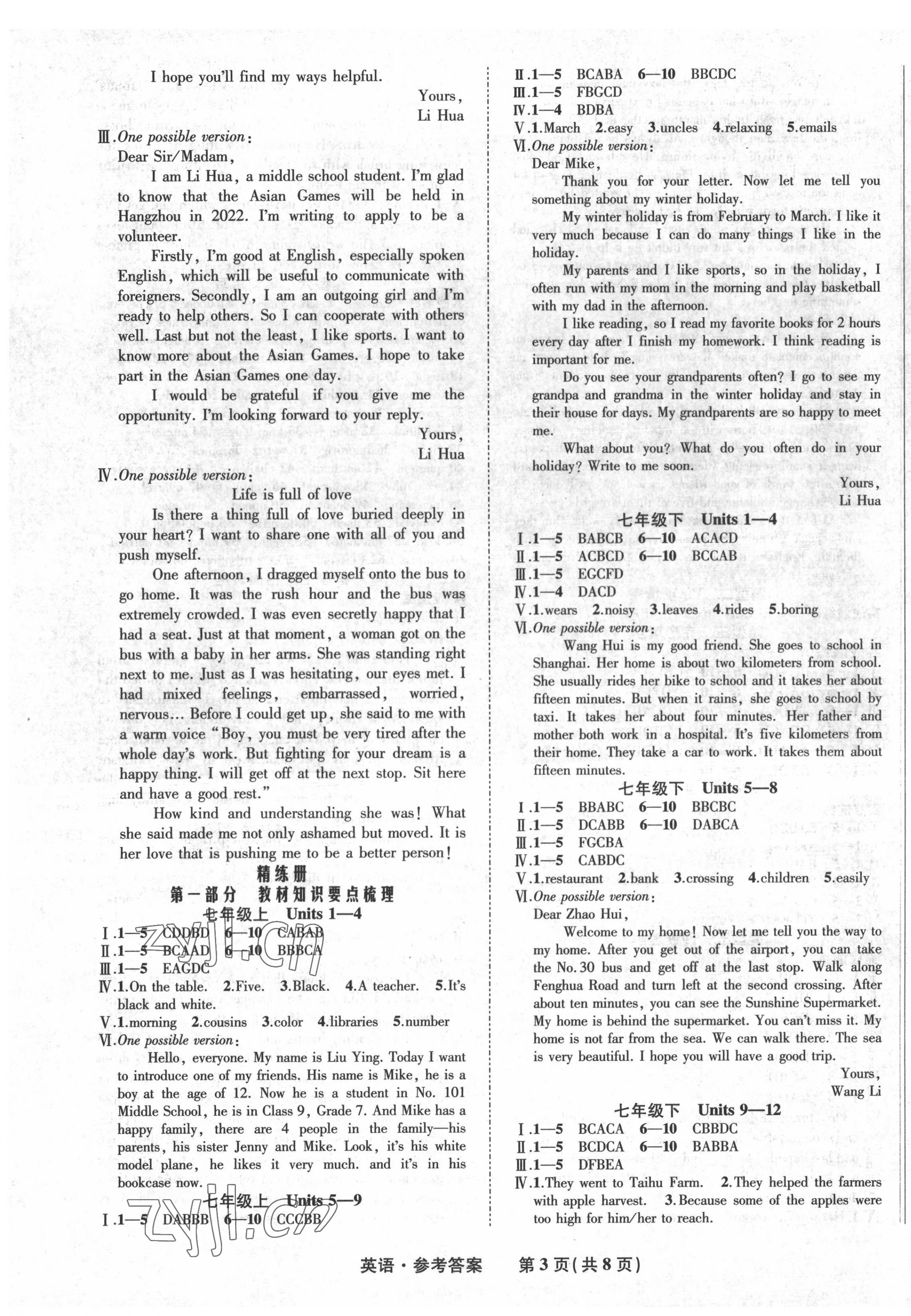 注:目前有些书本章节名称可能整理的还不是很完善,但都是按照顺序排列的,请同学们按照顺序仔细查找。练习册 2022年九年级毕业班综合练习与检测英语中考人教版 答案主要是用来给同学们做完题方便对答案用的,请勿直接抄袭。