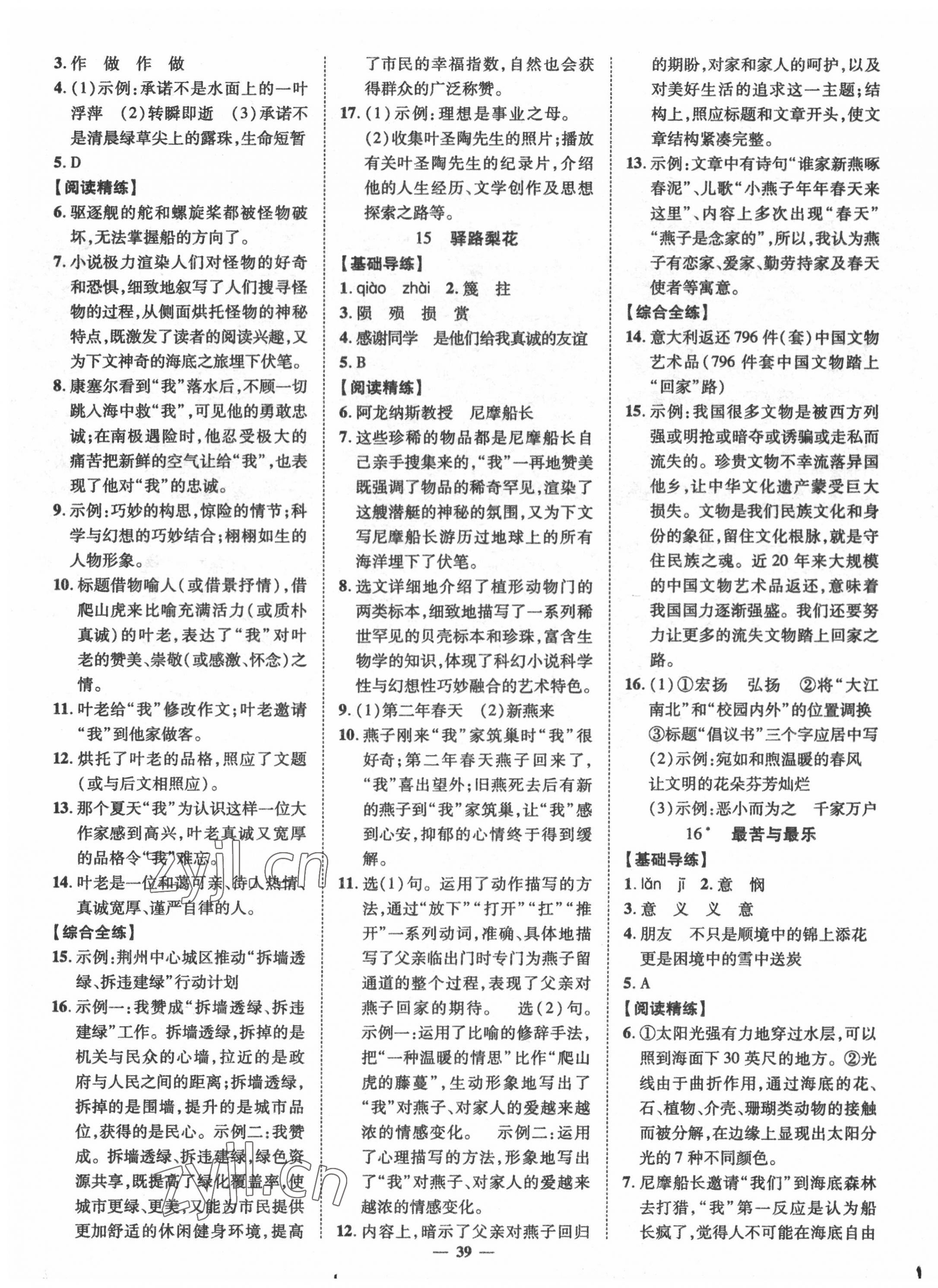 注:目前有些书本章节名称可能整理的还不是很完善,但都是按照顺序排列的,请同学们按照顺序仔细查找。练习册 2022年本土教辅名校学案初中生辅导七年级语文下册人教版荆州专版 答案主要是用来给同学们做完题方便对答案用的,请勿直接抄袭。