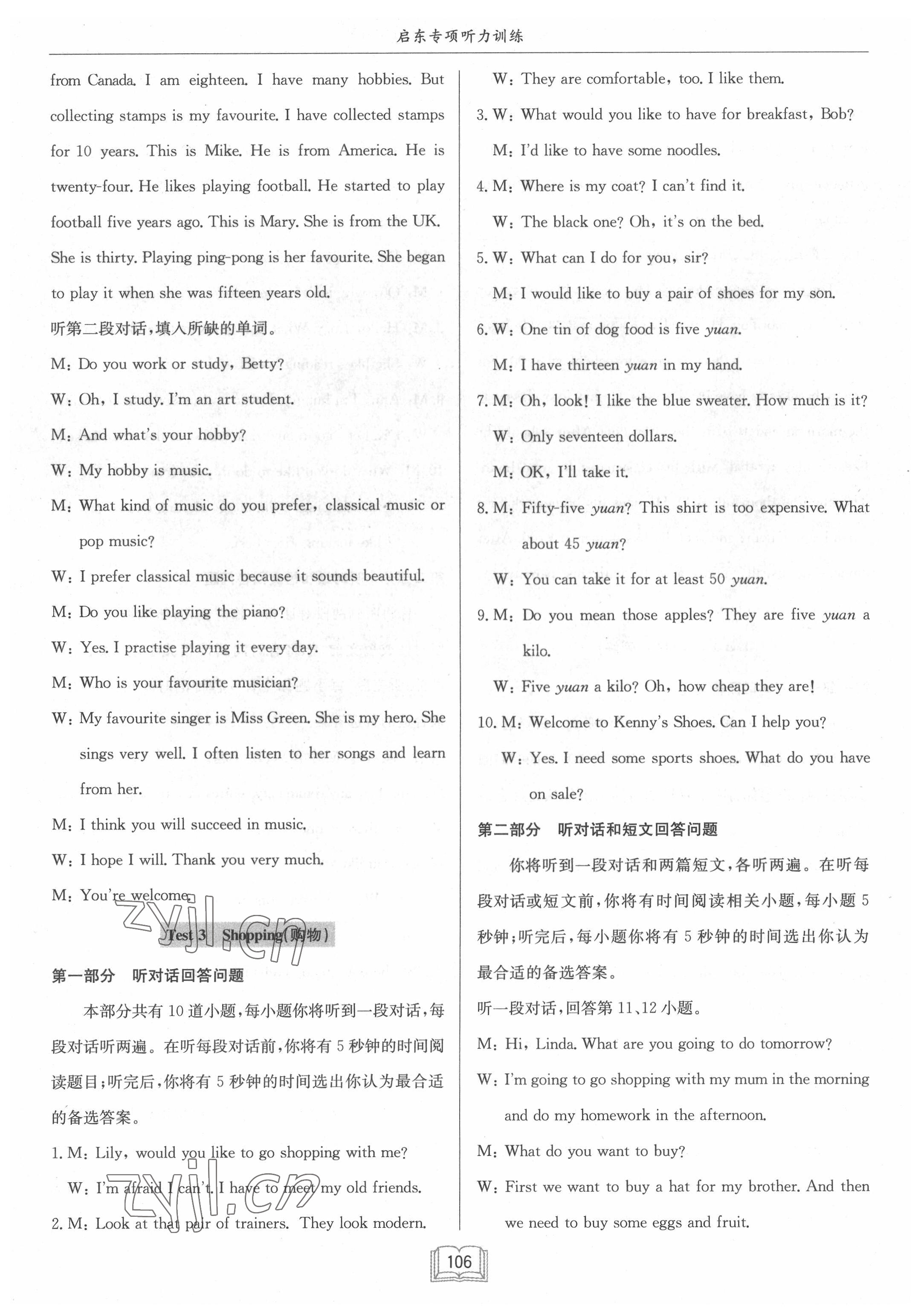 注:目前有些书本章节名称可能整理的还不是很完善,但都是按照顺序排列的,请同学们按照顺序仔细查找。练习册 2022年启东专项听力训练七年级英语下册译林版徐州专版 答案主要是用来给同学们做完题方便对答案用的,请勿直接抄袭。
