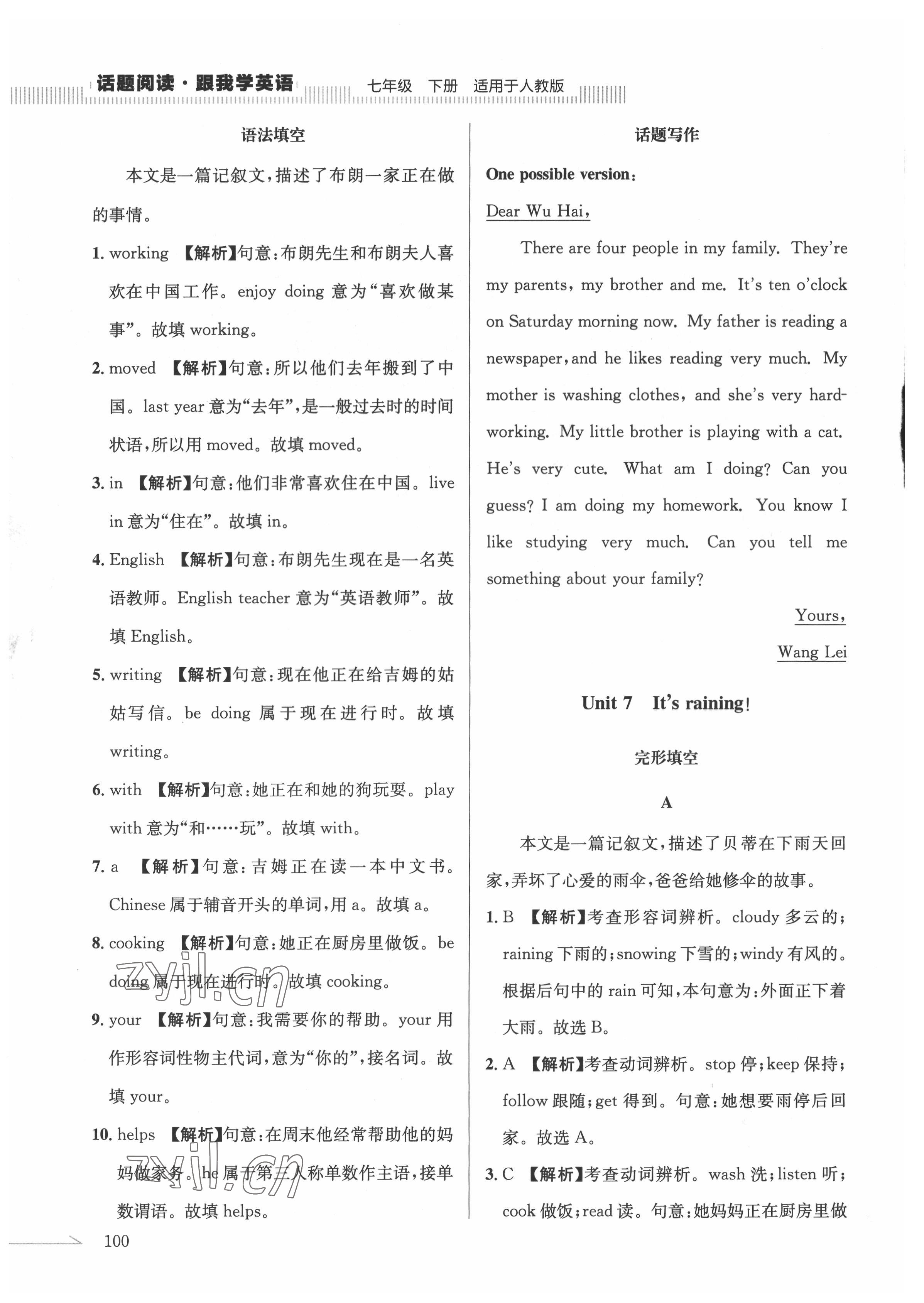 2022年跟我学英语话题阅读七年级英语下册人教版