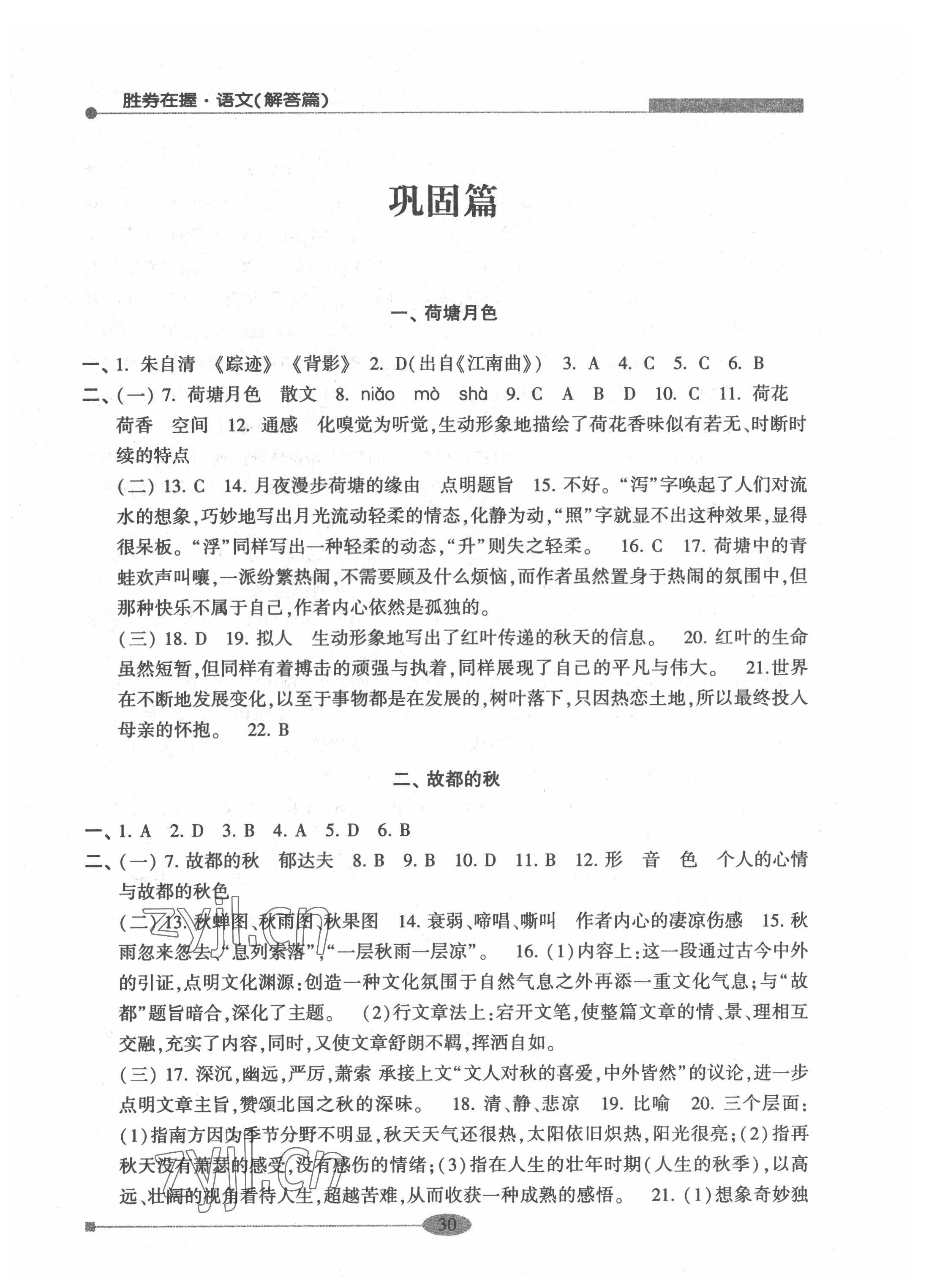注:目前有些书本章节名称可能整理的还不是很完善,但都是按照顺序排列的,请同学们按照顺序仔细查找。练习册 2022年胜券在握中考总复习指导语文 答案主要是用来给同学们做完题方便对答案用的,请勿直接抄袭。