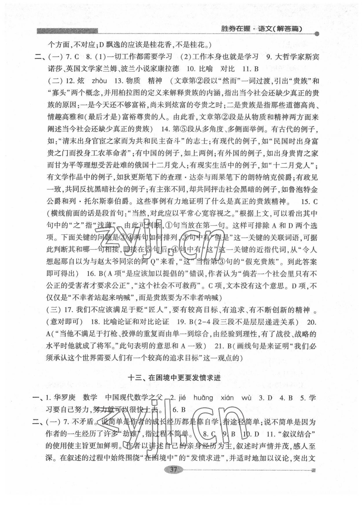 注:目前有些书本章节名称可能整理的还不是很完善,但都是按照顺序排列的,请同学们按照顺序仔细查找。练习册 2022年胜券在握中考总复习指导语文 答案主要是用来给同学们做完题方便对答案用的,请勿直接抄袭。