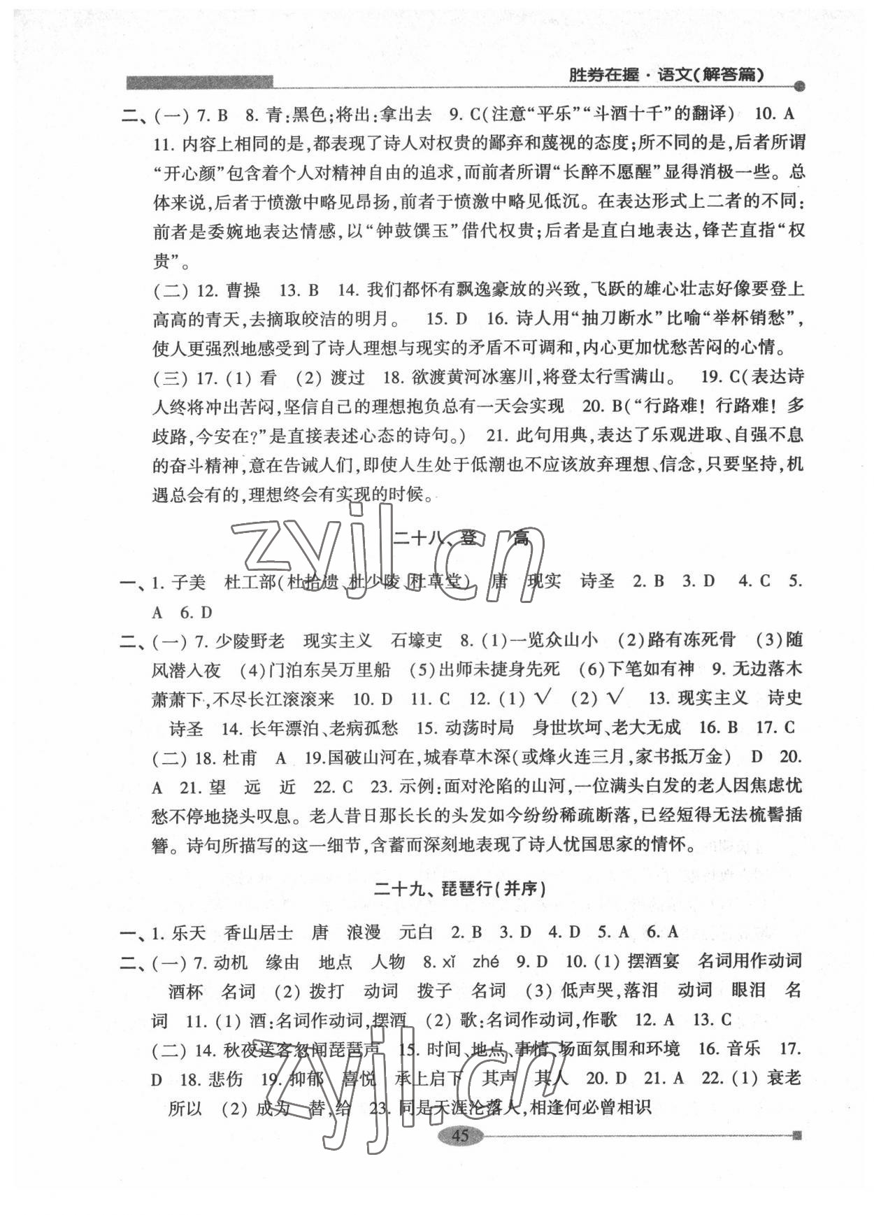 注:目前有些书本章节名称可能整理的还不是很完善,但都是按照顺序排列的,请同学们按照顺序仔细查找。练习册 2022年胜券在握中考总复习指导语文 答案主要是用来给同学们做完题方便对答案用的,请勿直接抄袭。