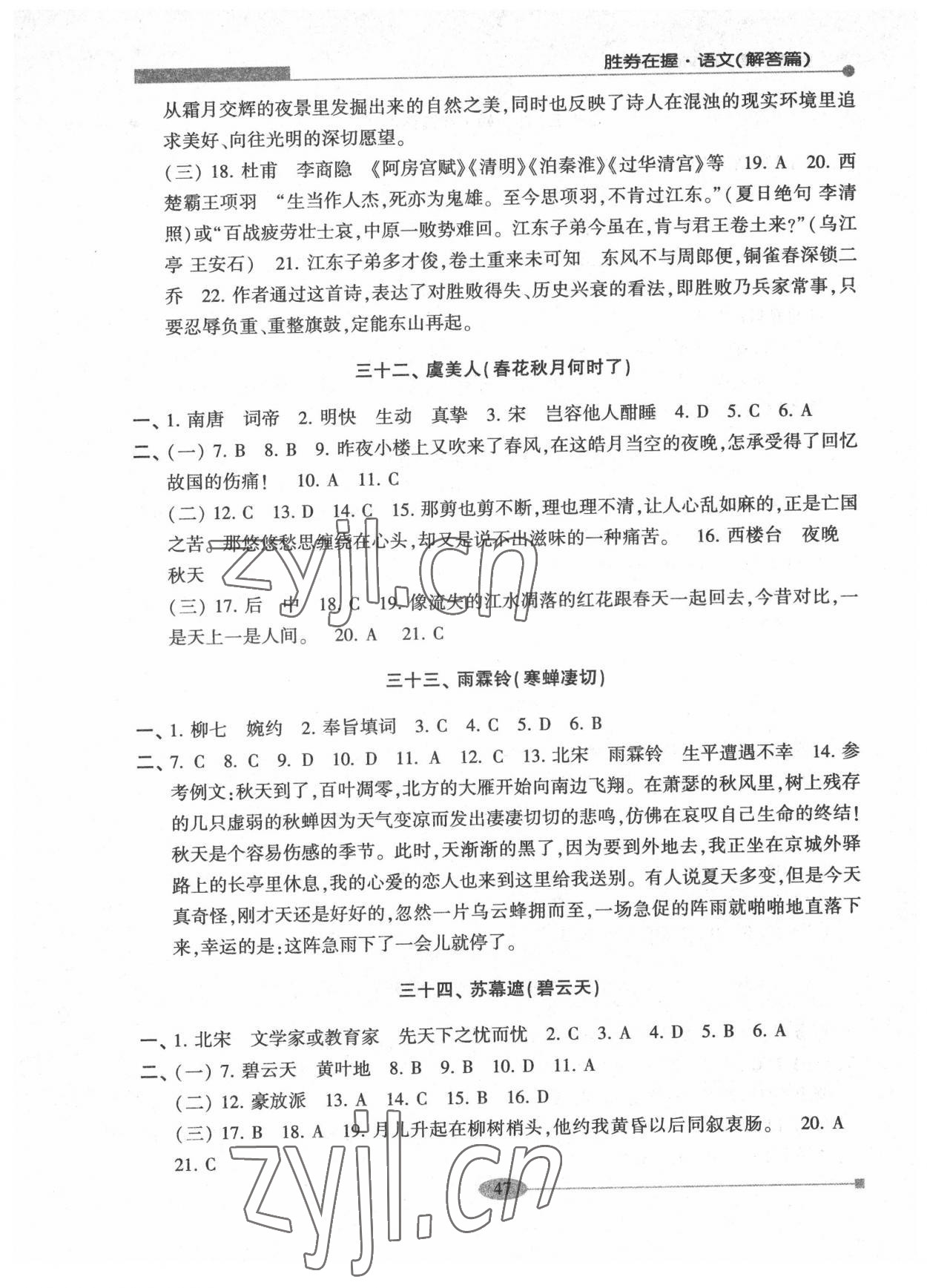 注:目前有些书本章节名称可能整理的还不是很完善,但都是按照顺序排列的,请同学们按照顺序仔细查找。练习册 2022年胜券在握中考总复习指导语文 答案主要是用来给同学们做完题方便对答案用的,请勿直接抄袭。