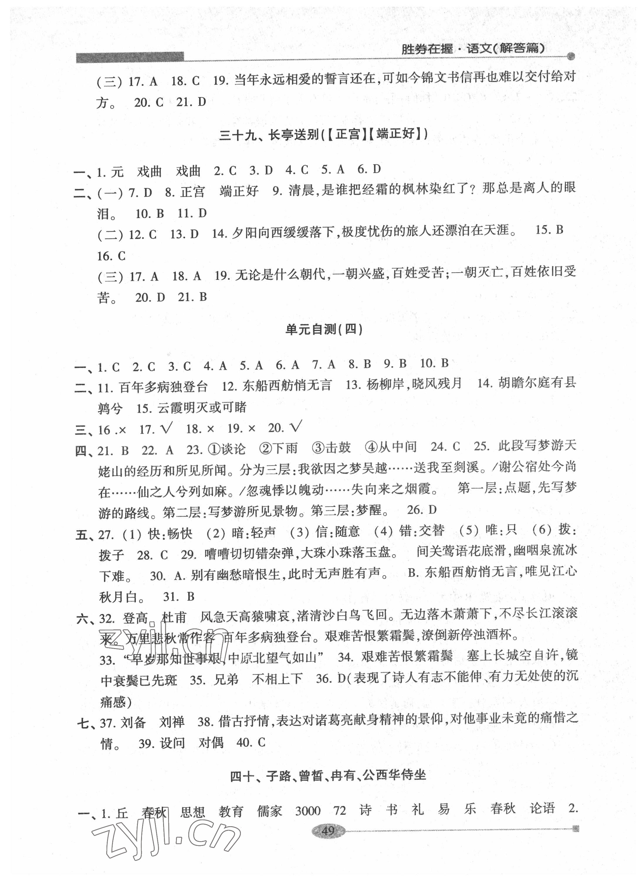 注:目前有些书本章节名称可能整理的还不是很完善,但都是按照顺序排列的,请同学们按照顺序仔细查找。练习册 2022年胜券在握中考总复习指导语文 答案主要是用来给同学们做完题方便对答案用的,请勿直接抄袭。