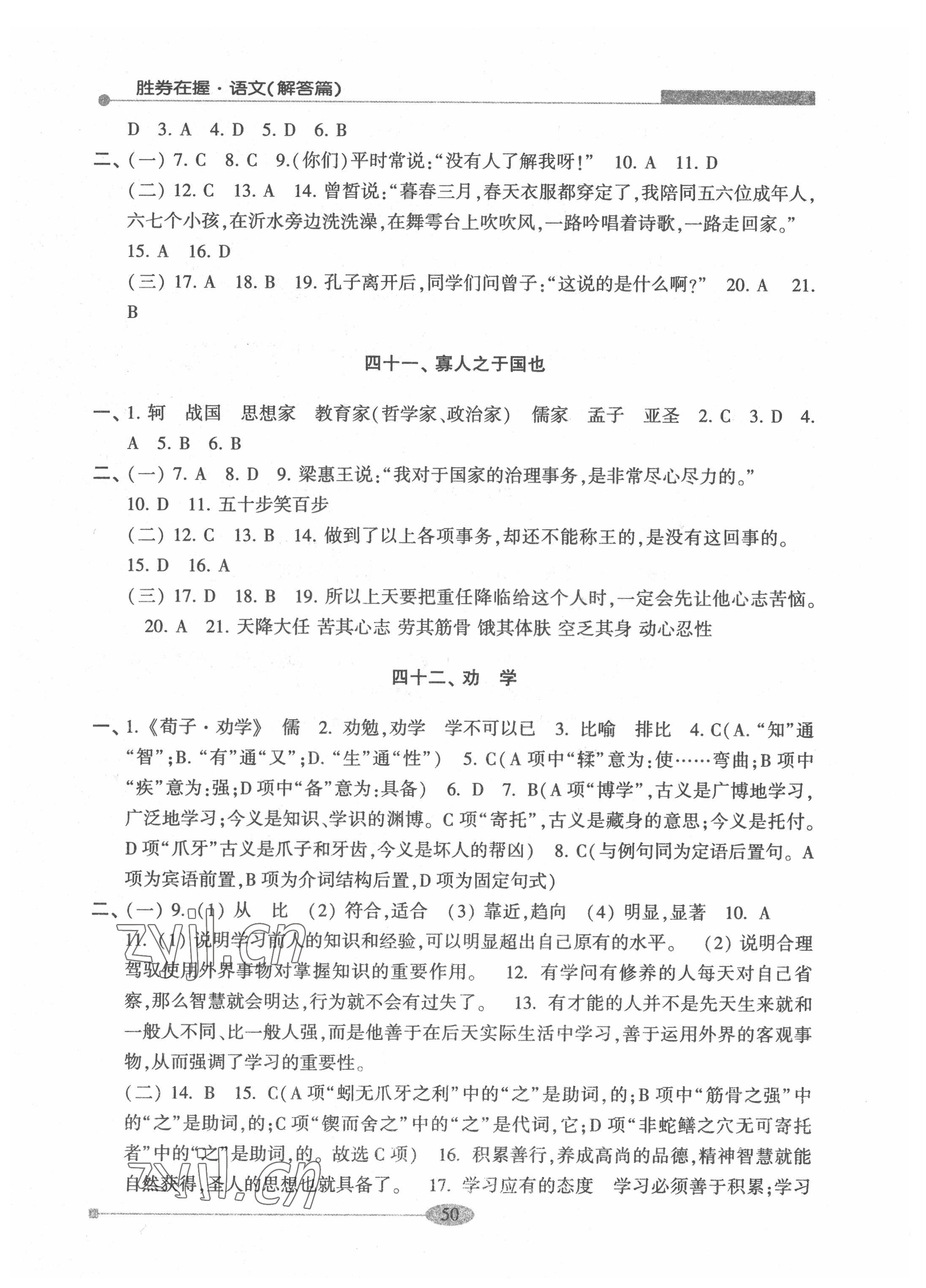 注:目前有些书本章节名称可能整理的还不是很完善,但都是按照顺序排列的,请同学们按照顺序仔细查找。练习册 2022年胜券在握中考总复习指导语文 答案主要是用来给同学们做完题方便对答案用的,请勿直接抄袭。