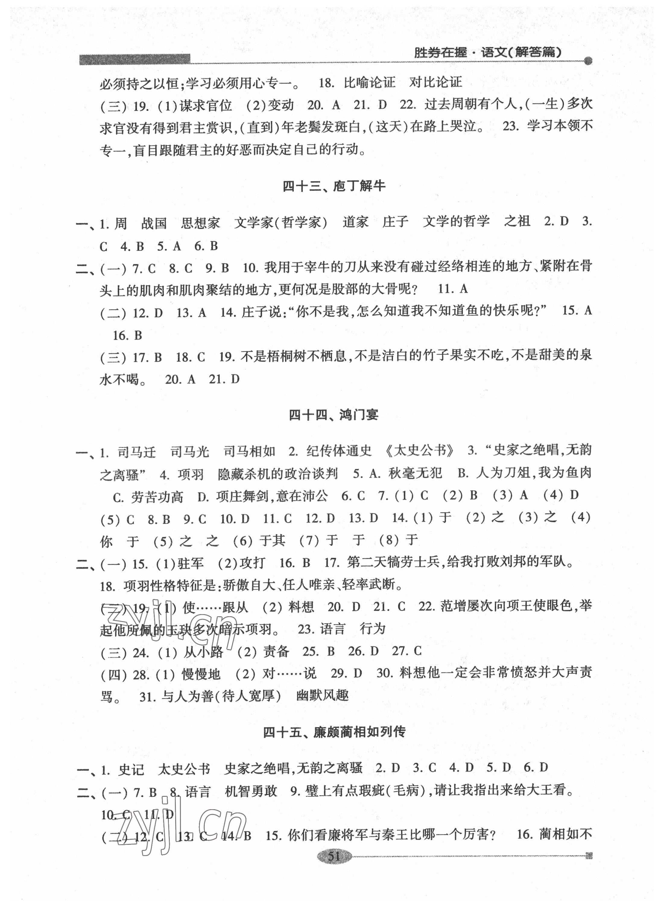 注:目前有些书本章节名称可能整理的还不是很完善,但都是按照顺序排列的,请同学们按照顺序仔细查找。练习册 2022年胜券在握中考总复习指导语文 答案主要是用来给同学们做完题方便对答案用的,请勿直接抄袭。