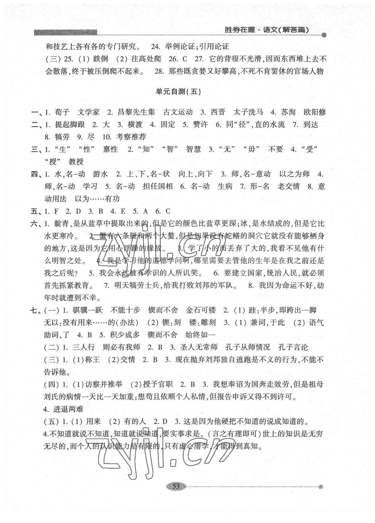 注:目前有些书本章节名称可能整理的还不是很完善,但都是按照顺序排列的,请同学们按照顺序仔细查找。练习册 2022年胜券在握中考总复习指导语文 答案主要是用来给同学们做完题方便对答案用的,请勿直接抄袭。