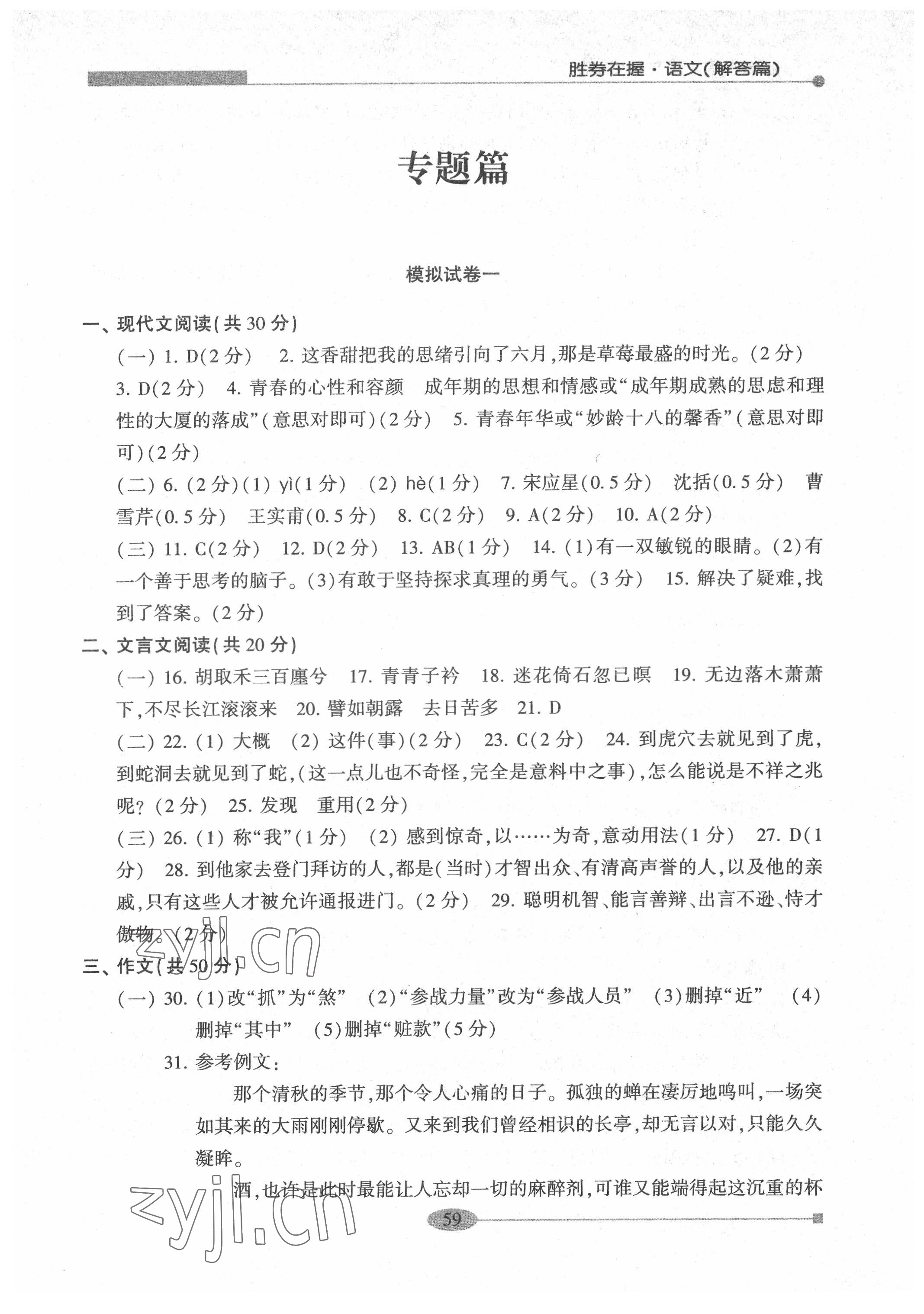 注:目前有些书本章节名称可能整理的还不是很完善,但都是按照顺序排列的,请同学们按照顺序仔细查找。练习册 2022年胜券在握中考总复习指导语文 答案主要是用来给同学们做完题方便对答案用的,请勿直接抄袭。