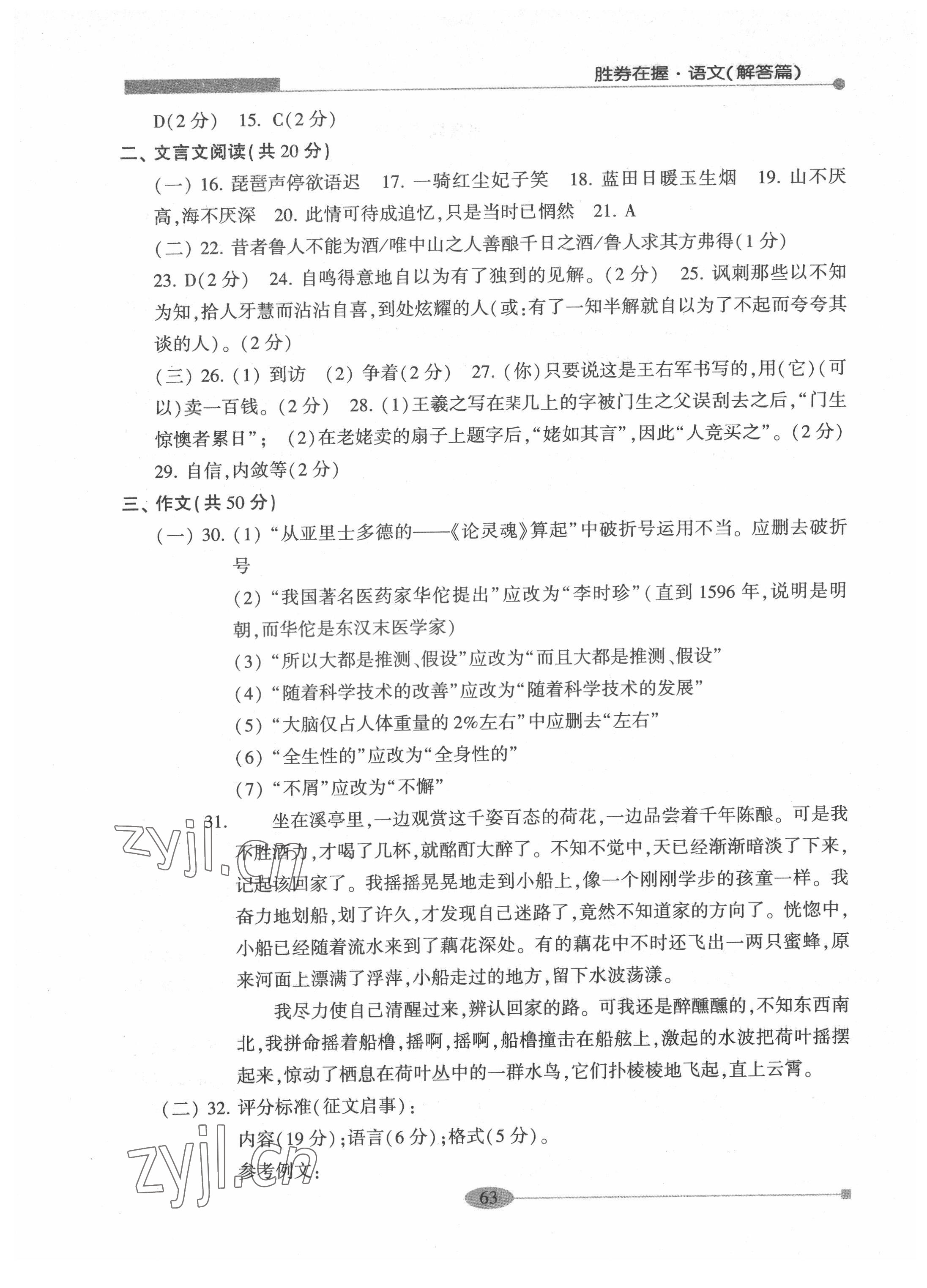 注:目前有些书本章节名称可能整理的还不是很完善,但都是按照顺序排列的,请同学们按照顺序仔细查找。练习册 2022年胜券在握中考总复习指导语文 答案主要是用来给同学们做完题方便对答案用的,请勿直接抄袭。