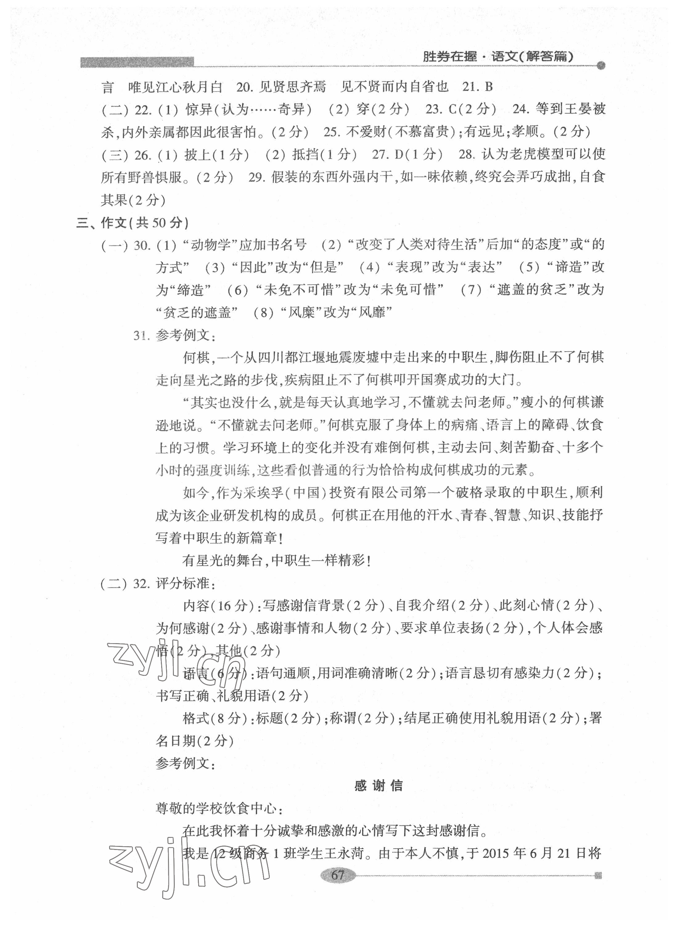 注:目前有些书本章节名称可能整理的还不是很完善,但都是按照顺序排列的,请同学们按照顺序仔细查找。练习册 2022年胜券在握中考总复习指导语文 答案主要是用来给同学们做完题方便对答案用的,请勿直接抄袭。