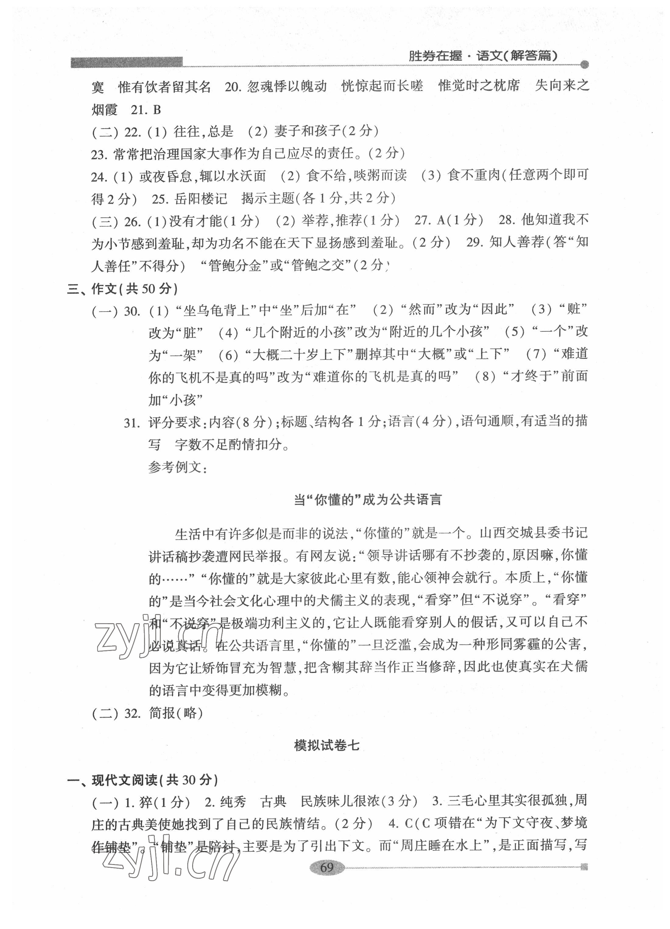 2022年胜券在握中考总复习指导语文