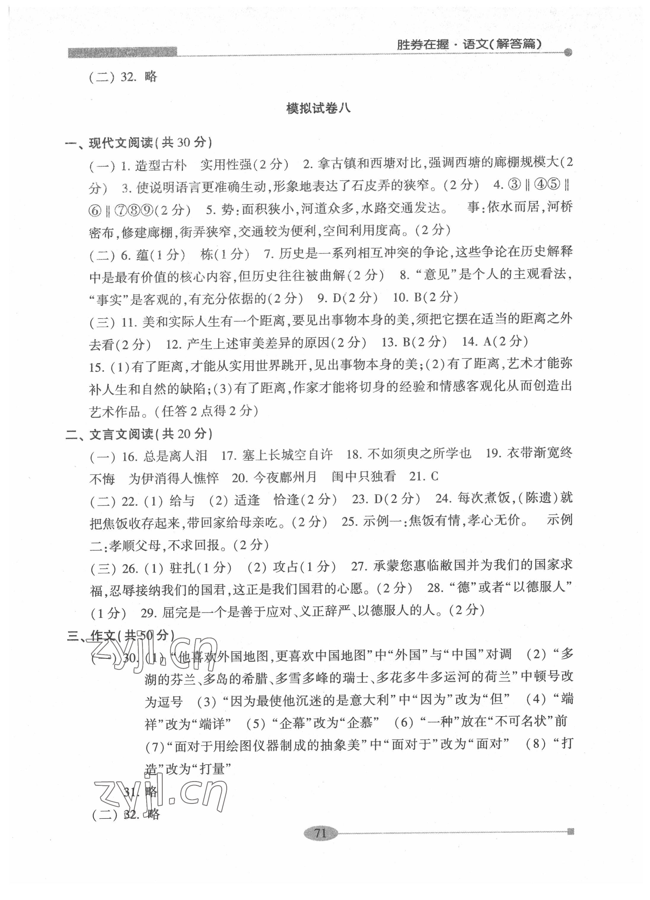注:目前有些书本章节名称可能整理的还不是很完善,但都是按照顺序排列的,请同学们按照顺序仔细查找。练习册 2022年胜券在握中考总复习指导语文 答案主要是用来给同学们做完题方便对答案用的,请勿直接抄袭。