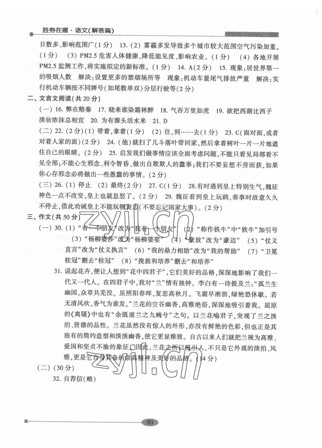 注:目前有些书本章节名称可能整理的还不是很完善,但都是按照顺序排列的,请同学们按照顺序仔细查找。练习册 2022年胜券在握中考总复习指导语文 答案主要是用来给同学们做完题方便对答案用的,请勿直接抄袭。