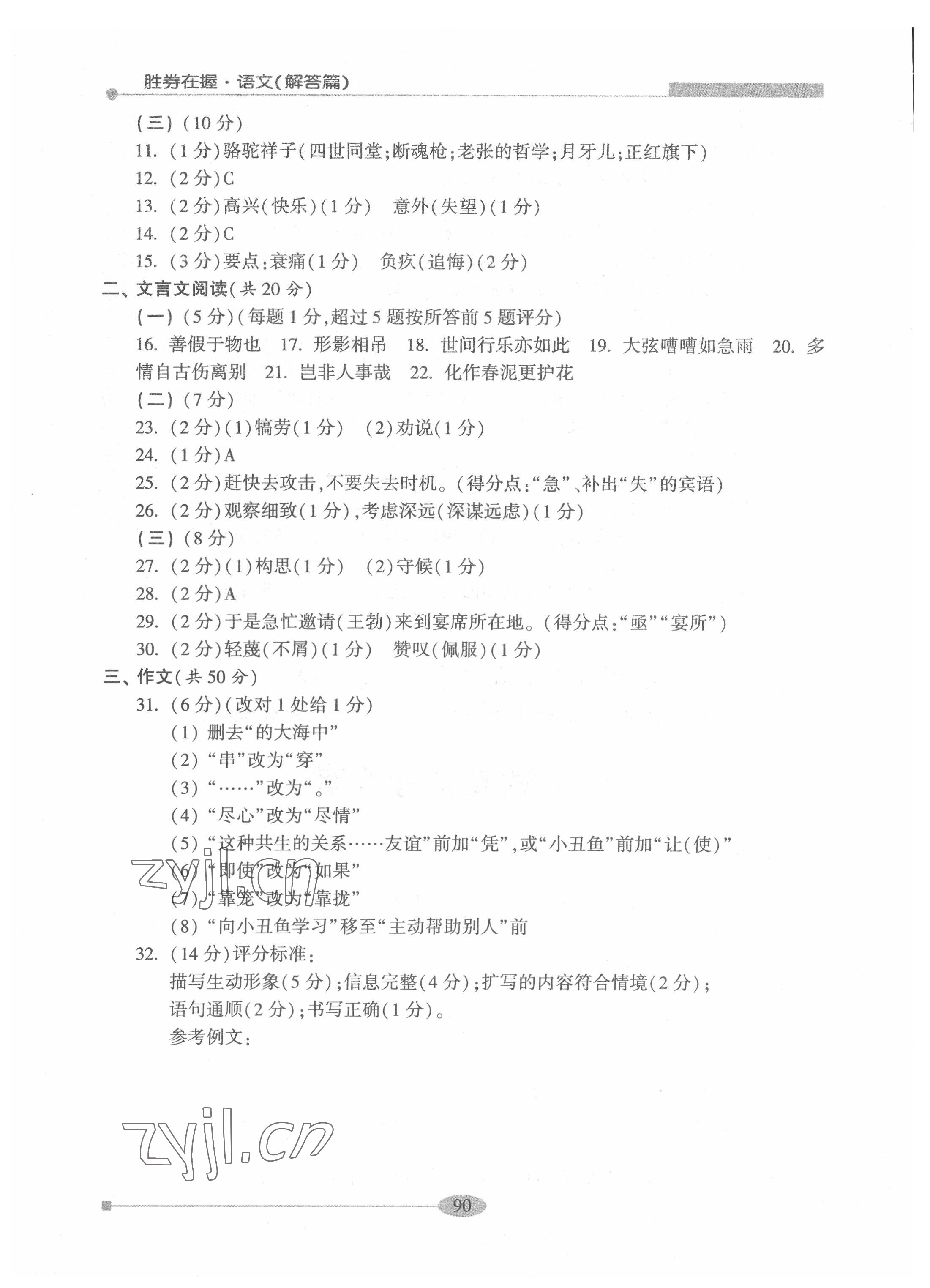 注:目前有些书本章节名称可能整理的还不是很完善,但都是按照顺序排列的,请同学们按照顺序仔细查找。练习册 2022年胜券在握中考总复习指导语文 答案主要是用来给同学们做完题方便对答案用的,请勿直接抄袭。