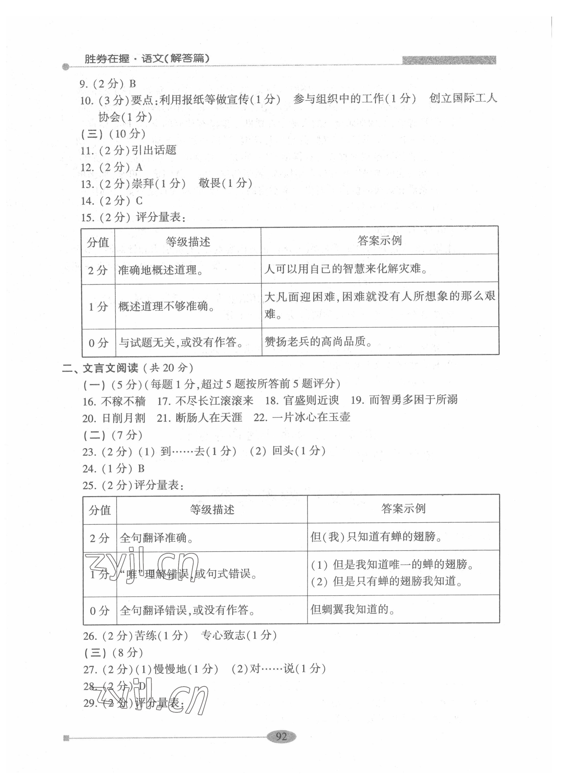 注:目前有些书本章节名称可能整理的还不是很完善,但都是按照顺序排列的,请同学们按照顺序仔细查找。练习册 2022年胜券在握中考总复习指导语文 答案主要是用来给同学们做完题方便对答案用的,请勿直接抄袭。