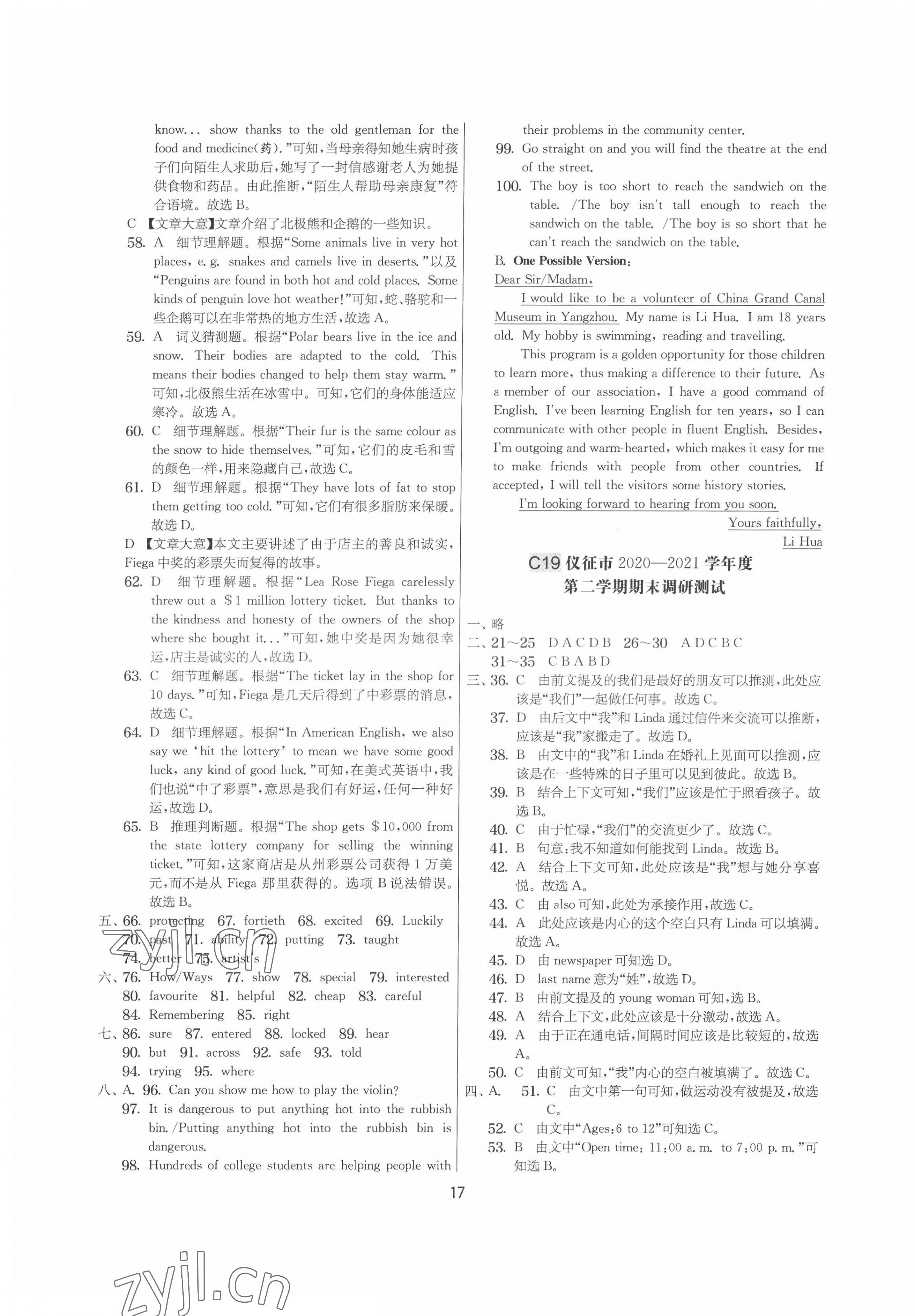 注:目前有些书本章节名称可能整理的还不是很完善,但都是按照顺序排列的,请同学们按照顺序仔细查找。练习册 2022年期末闯关制胜金卷七年级英语下册译林版 答案主要是用来给同学们做完题方便对答案用的,请勿直接抄袭。