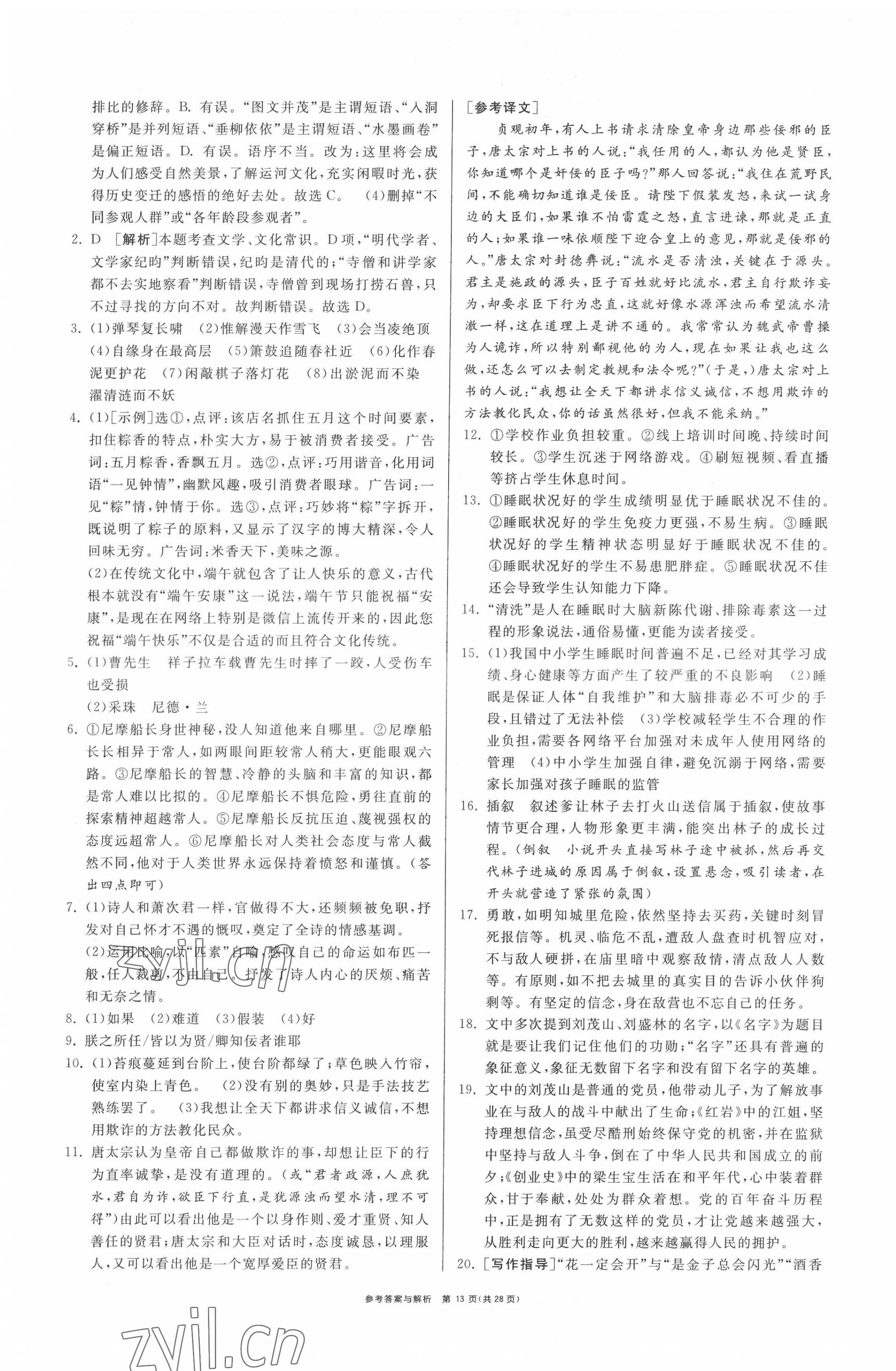 注:目前有些书本章节名称可能整理的还不是很完善,但都是按照顺序排列的,请同学们按照顺序仔细查找。练习册 2022年期末闯关制胜金卷七年级语文下册人教版 答案主要是用来给同学们做完题方便对答案用的,请勿直接抄袭。