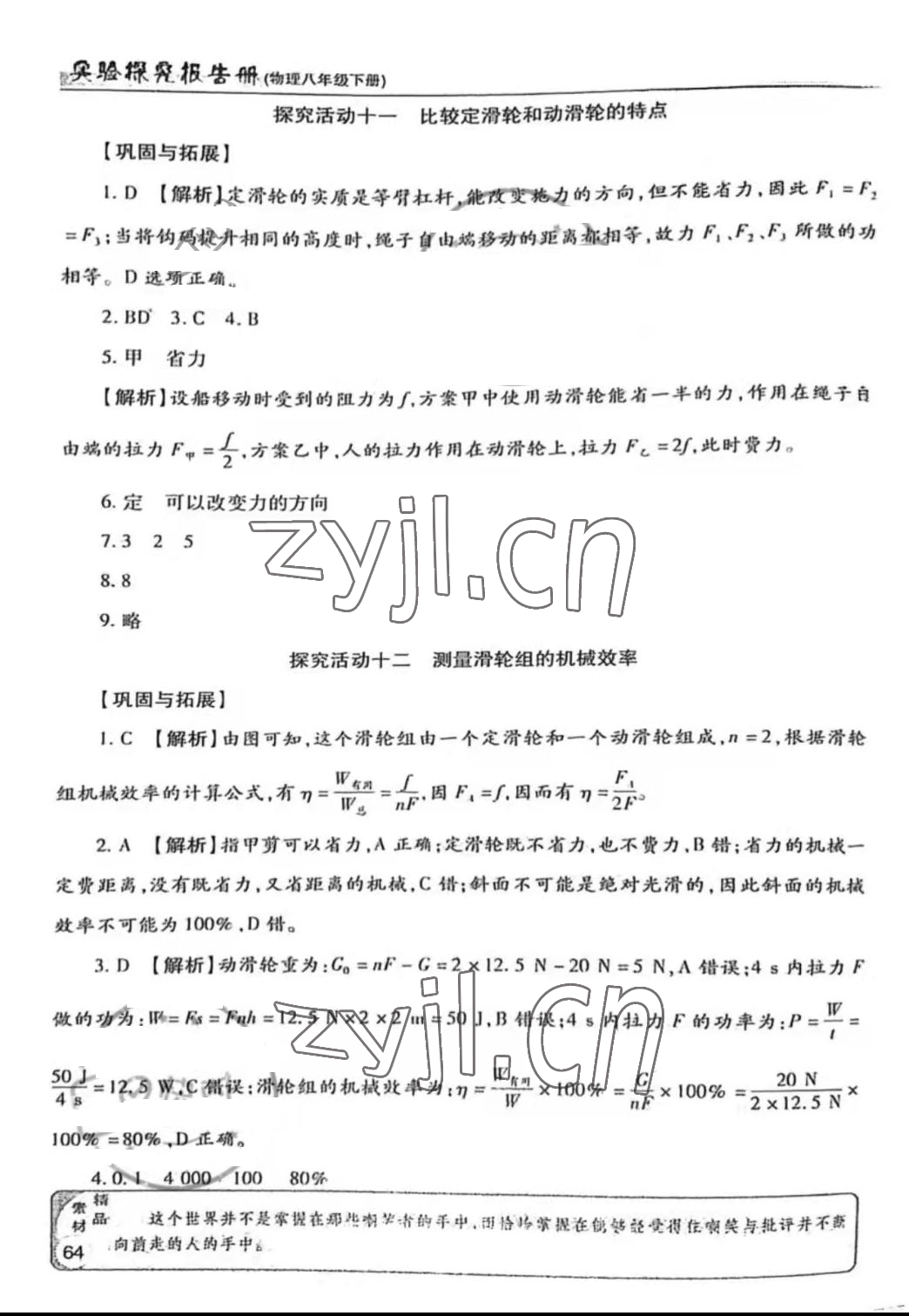 注:目前有些书本章节名称可能整理的还不是很完善,但都是按照顺序排列的,请同学们按照顺序仔细查找。练习册 2022物理实验探究报告册八年级下册 答案主要是用来给同学们做完题方便对答案用的,请勿直接抄袭。