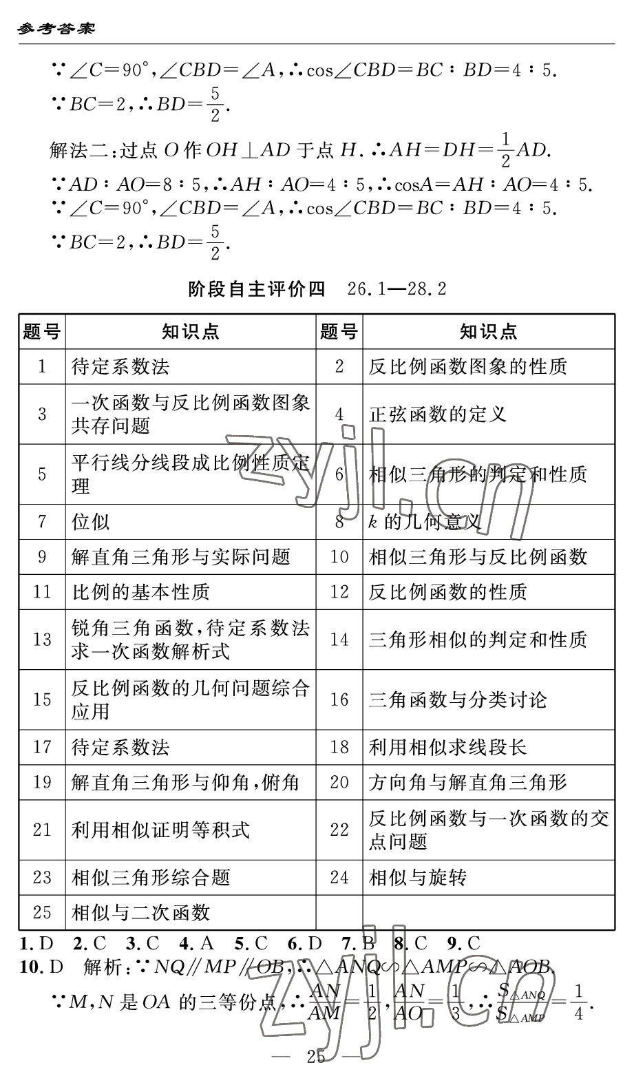 注:目前有些书本章节名称可能整理的还不是很完善,但都是按照顺序排列的,请同学们按照顺序仔细查找。练习册 2022年智慧课堂自主评价九年级数学下册人教版 答案主要是用来给同学们做完题方便对答案用的,请勿直接抄袭。