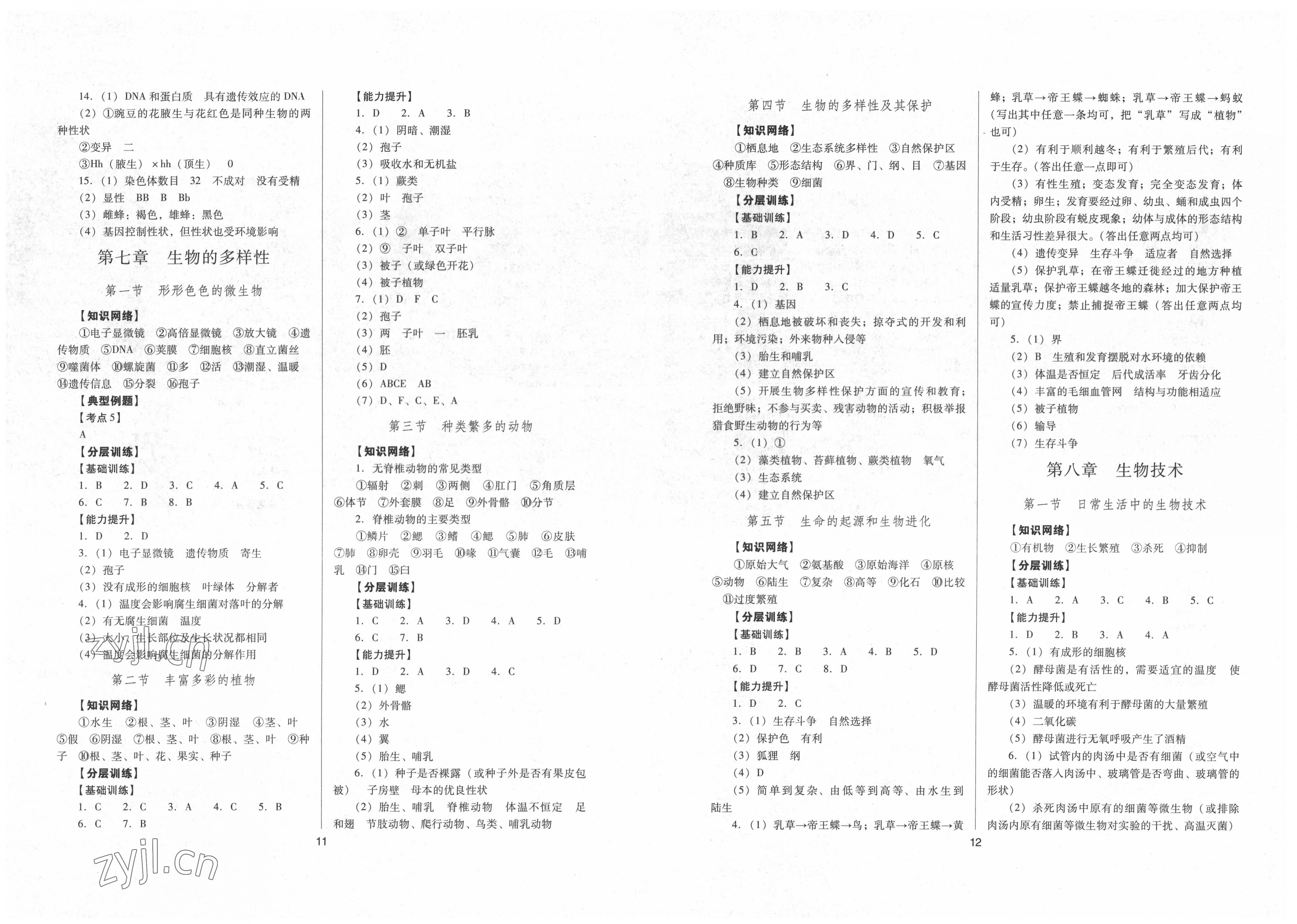 注:目前有些书本章节名称可能整理的还不是很完善,但都是按照顺序排列的,请同学们按照顺序仔细查找。练习册 2022年中考指导生物 答案主要是用来给同学们做完题方便对答案用的,请勿直接抄袭。