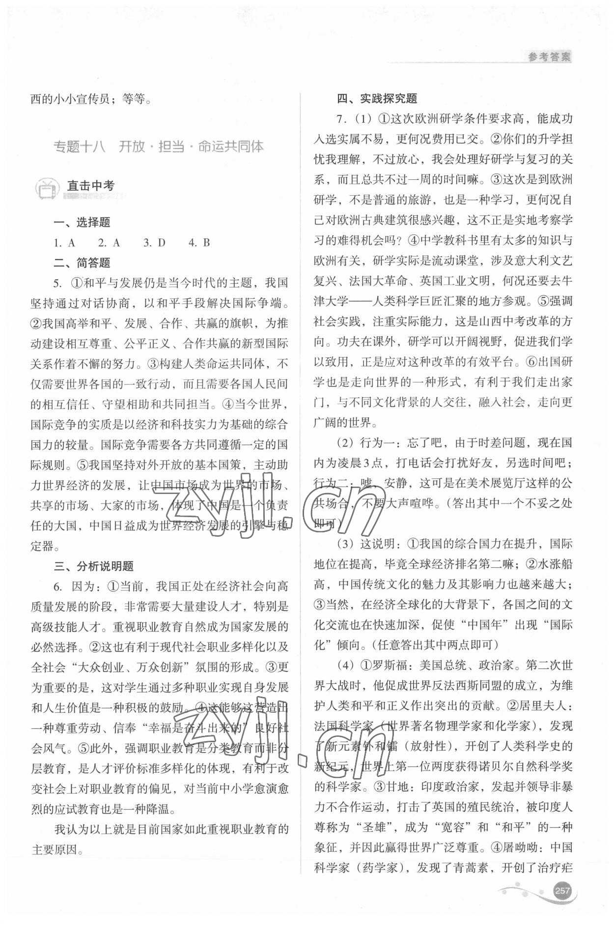 注:目前有些书本章节名称可能整理的还不是很完善,但都是按照顺序排列的,请同学们按照顺序仔细查找。练习册 2022年中考复习指导与优化训练道德与法治 答案主要是用来给同学们做完题方便对答案用的,请勿直接抄袭。