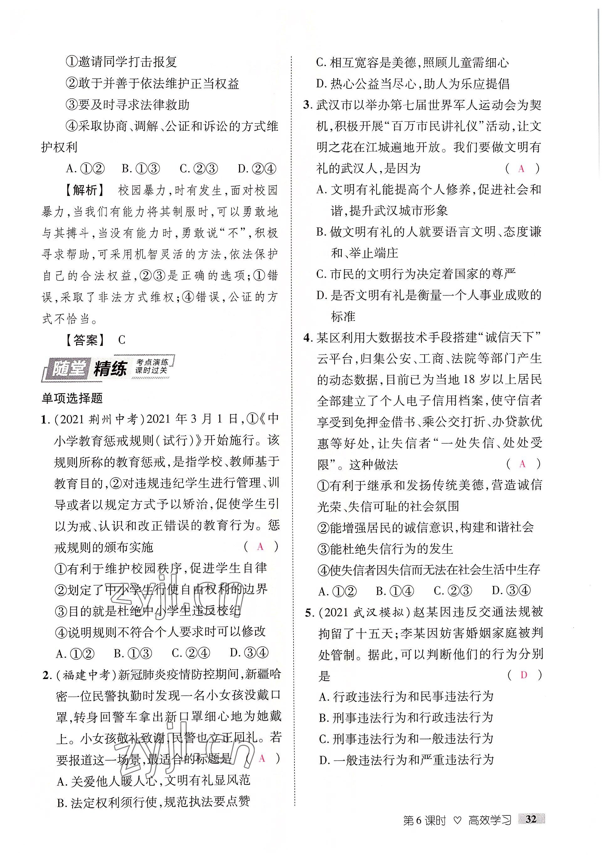 注:目前有些书本章节名称可能整理的还不是很完善,但都是按照顺序排列的,请同学们按照顺序仔细查找。练习册 2022年中考新方向湖北科学技术出版社道德与法治 答案主要是用来给同学们做完题方便对答案用的,请勿直接抄袭。