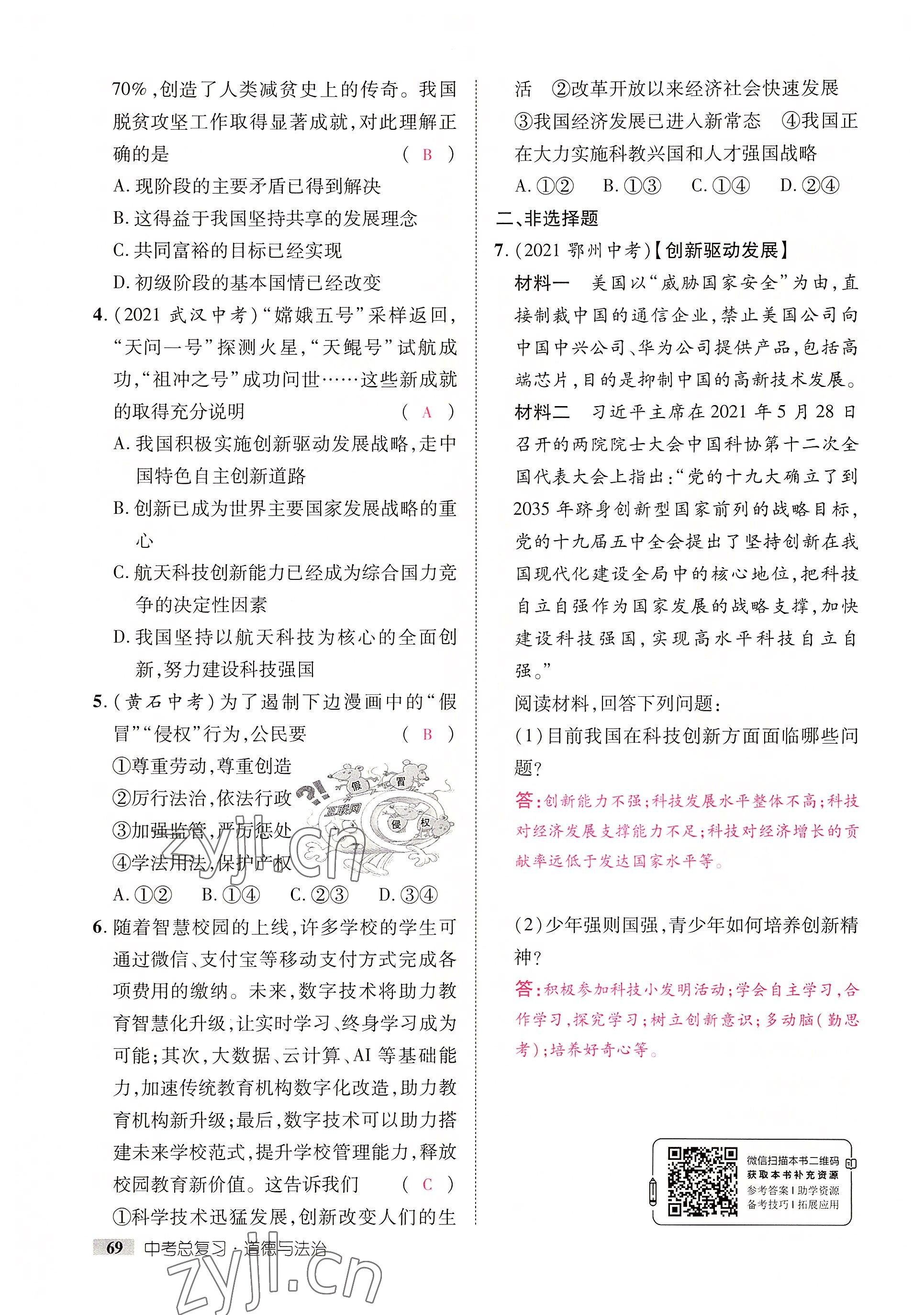 注:目前有些书本章节名称可能整理的还不是很完善,但都是按照顺序排列的,请同学们按照顺序仔细查找。练习册 2022年中考新方向湖北科学技术出版社道德与法治 答案主要是用来给同学们做完题方便对答案用的,请勿直接抄袭。