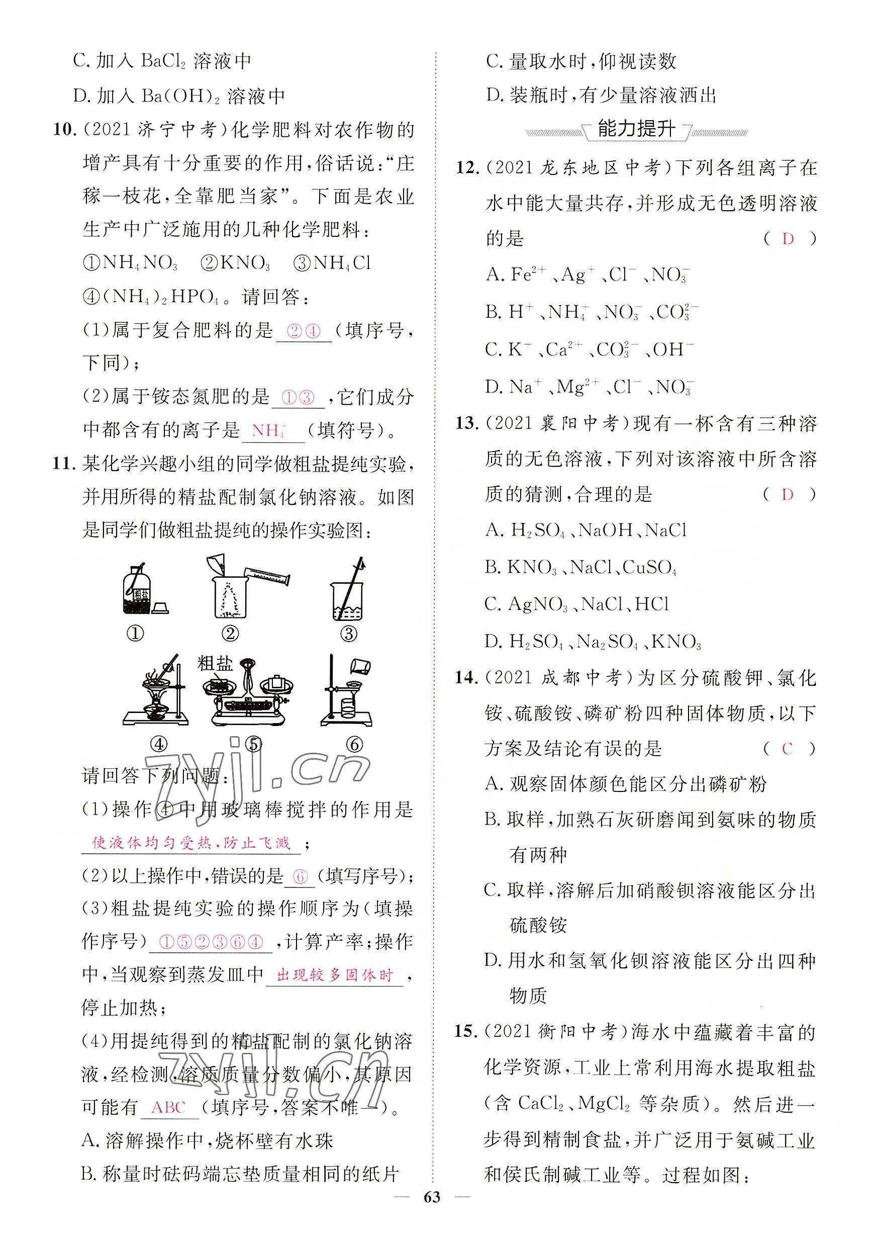 注:目前有些书本章节名称可能整理的还不是很完善,但都是按照顺序排列的,请同学们按照顺序仔细查找。练习册 2022年中考新方向湖北科学技术出版社化学 答案主要是用来给同学们做完题方便对答案用的,请勿直接抄袭。