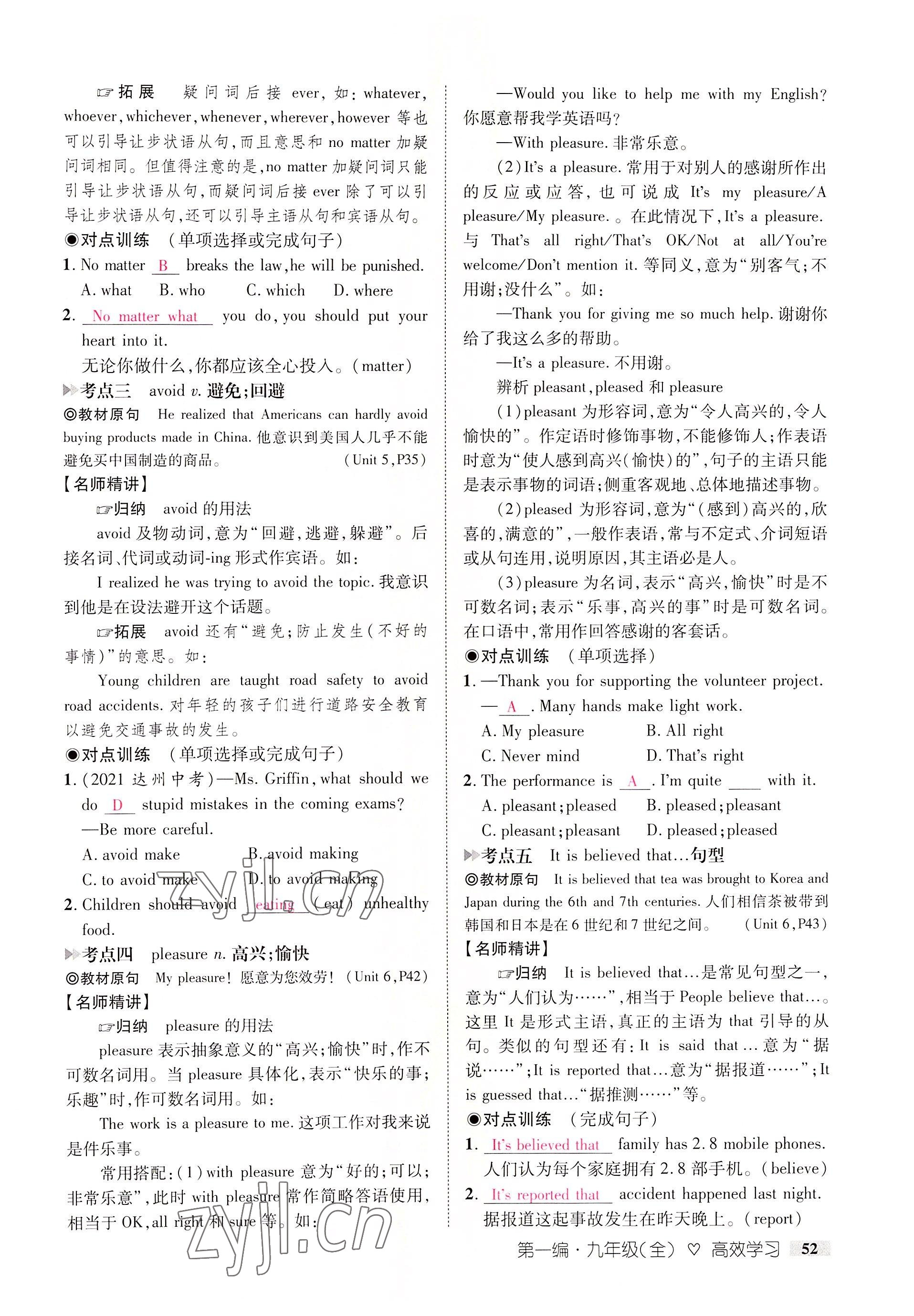 - 参考答案第52页