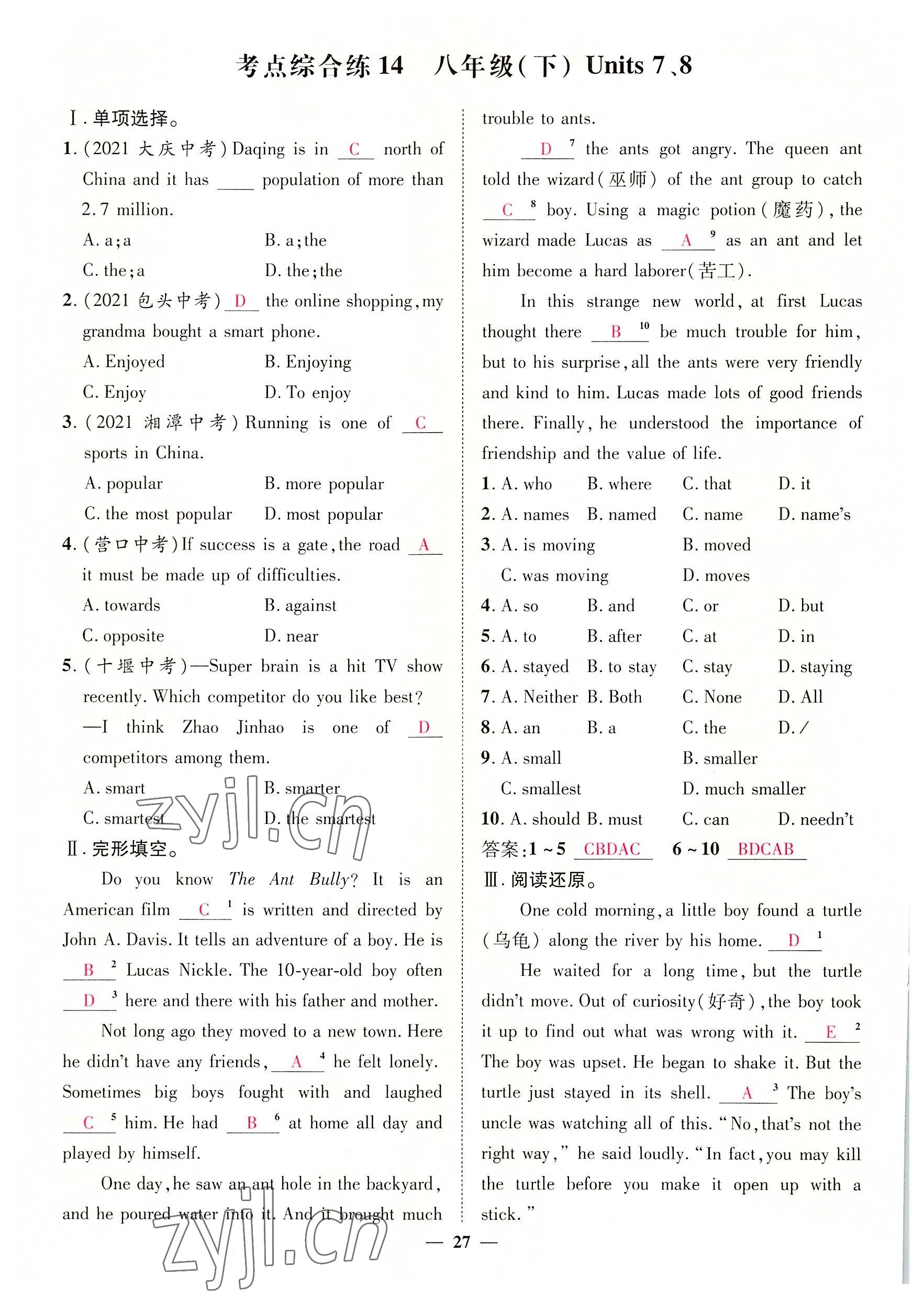 注:目前有些书本章节名称可能整理的还不是很完善,但都是按照顺序排列的,请同学们按照顺序仔细查找。练习册 2022年中考新方向湖北科学技术出版社英语 答案主要是用来给同学们做完题方便对答案用的,请勿直接抄袭。