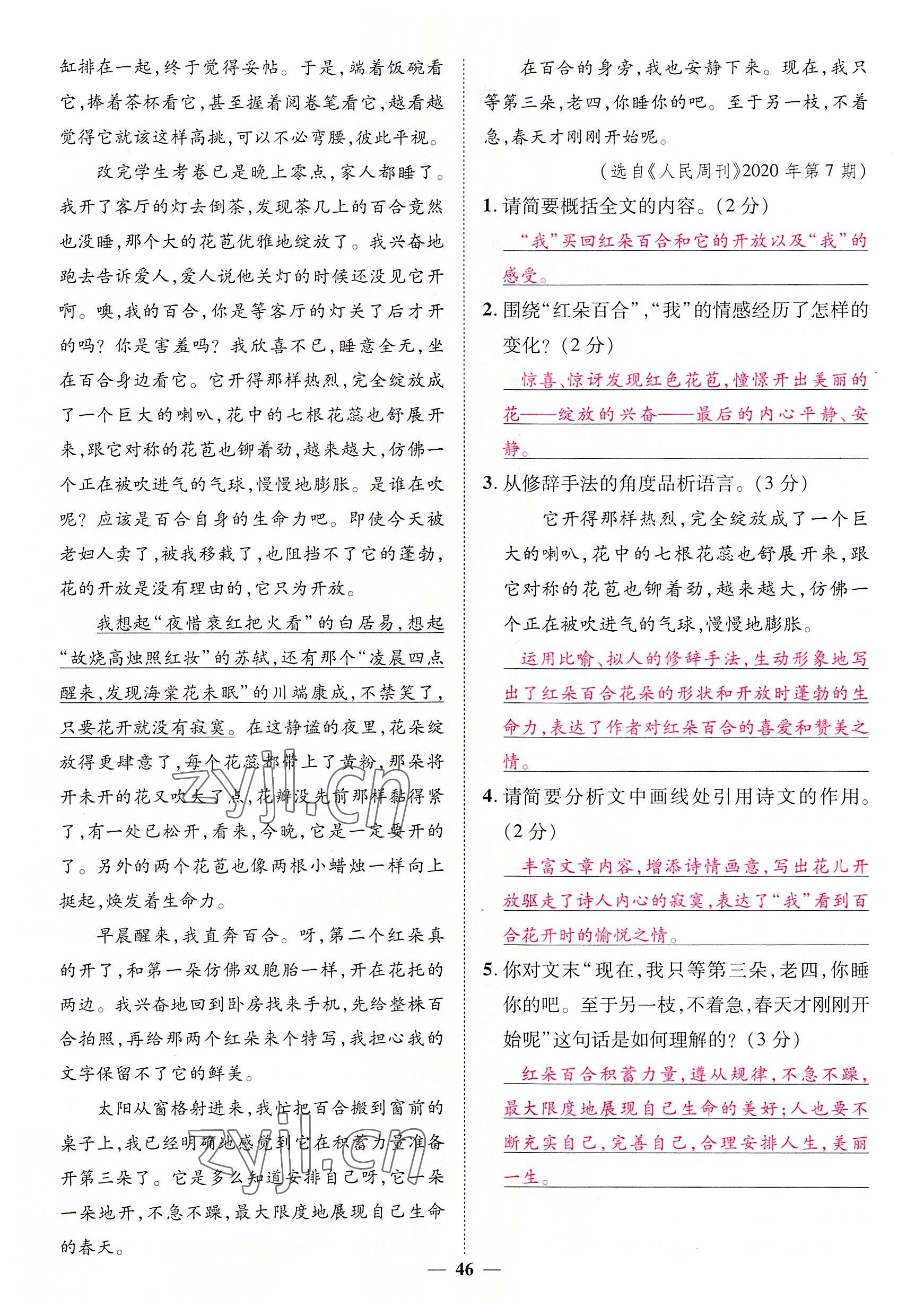 注:目前有些书本章节名称可能整理的还不是很完善,但都是按照顺序排列的,请同学们按照顺序仔细查找。练习册 2022年中考新方向湖北科学技术出版社语文 答案主要是用来给同学们做完题方便对答案用的,请勿直接抄袭。