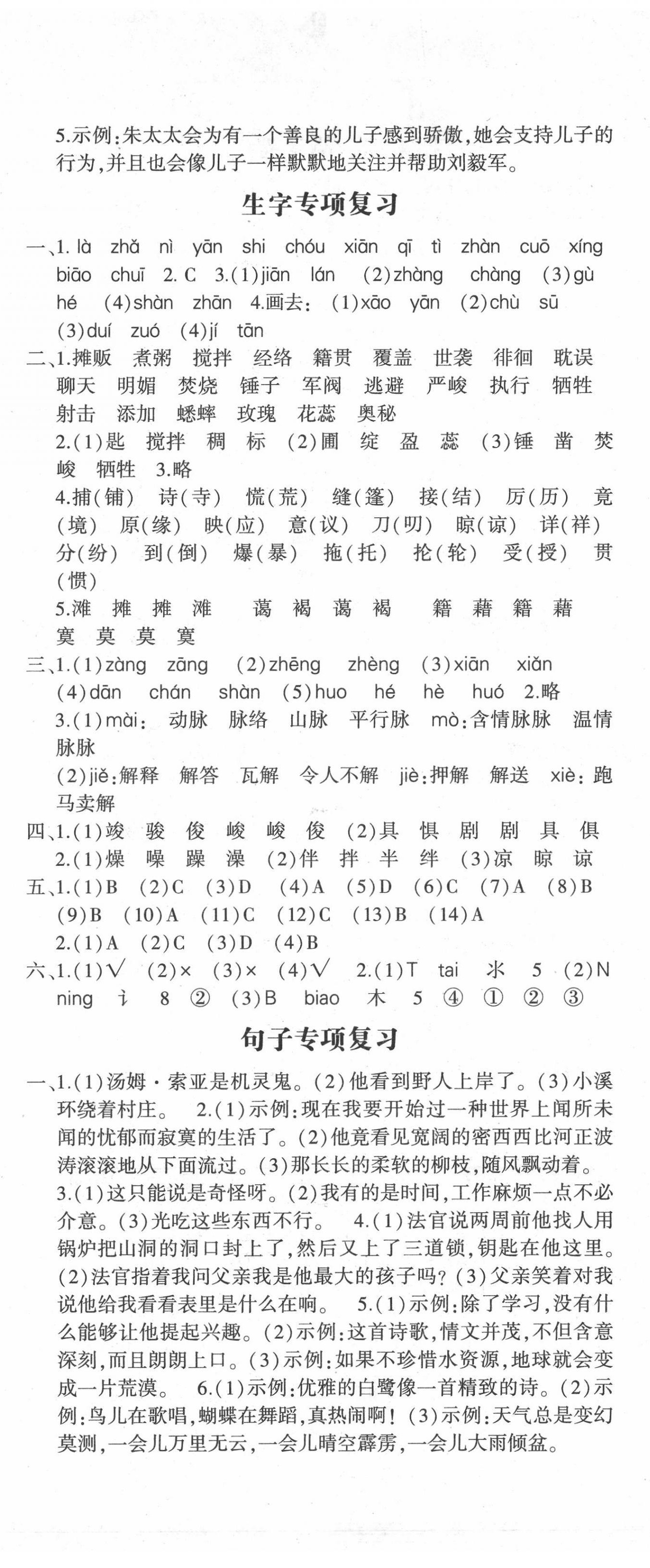 注:目前有些书本章节名称可能整理的还不是很完善,但都是按照顺序排列的,请同学们按照顺序仔细查找。练习册 2022年单元同步核心素养与能力达标测评卷六年级语文下册人教版 答案主要是用来给同学们做完题方便对答案用的,请勿直接抄袭。