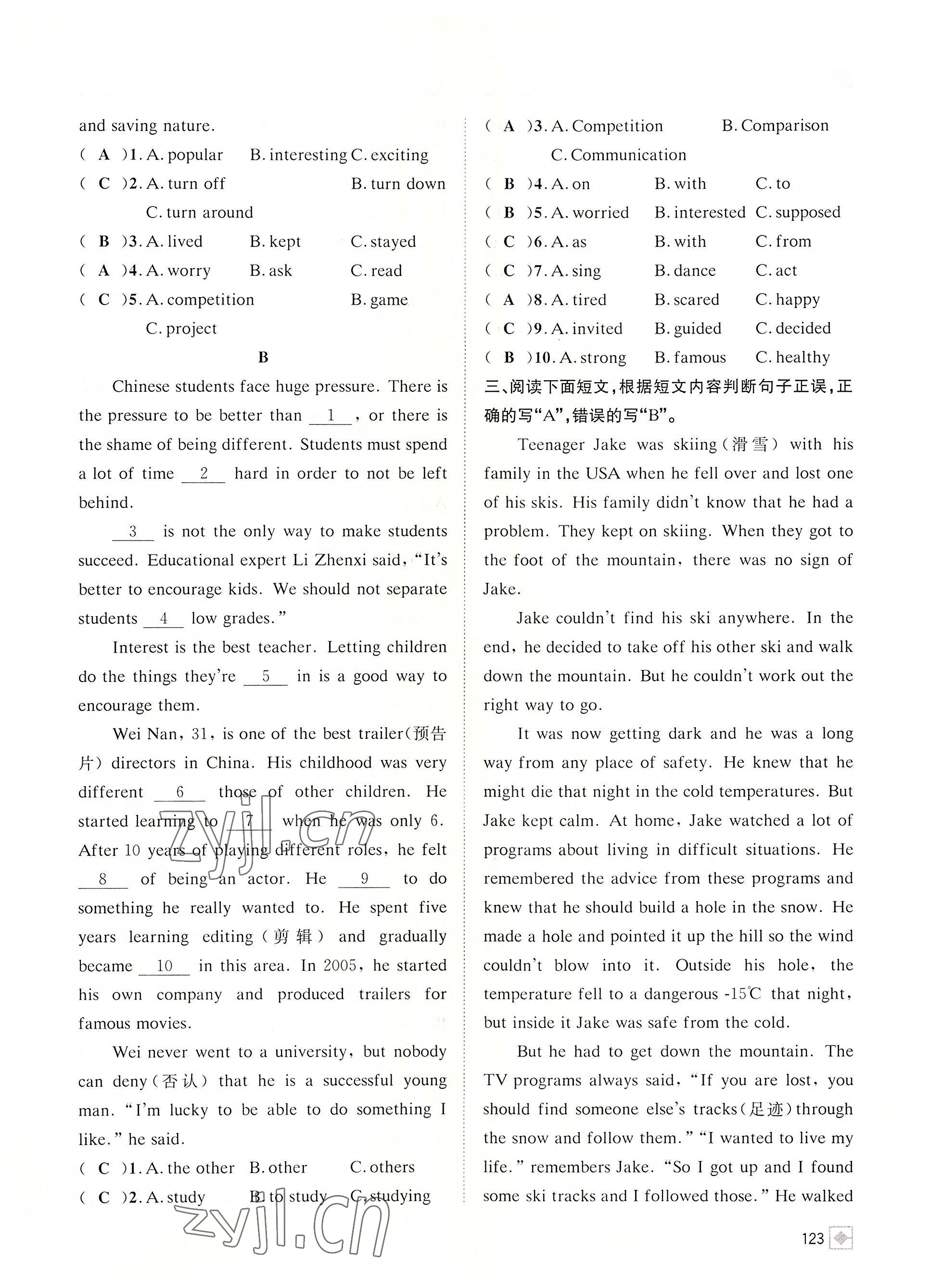 参考答案第123页