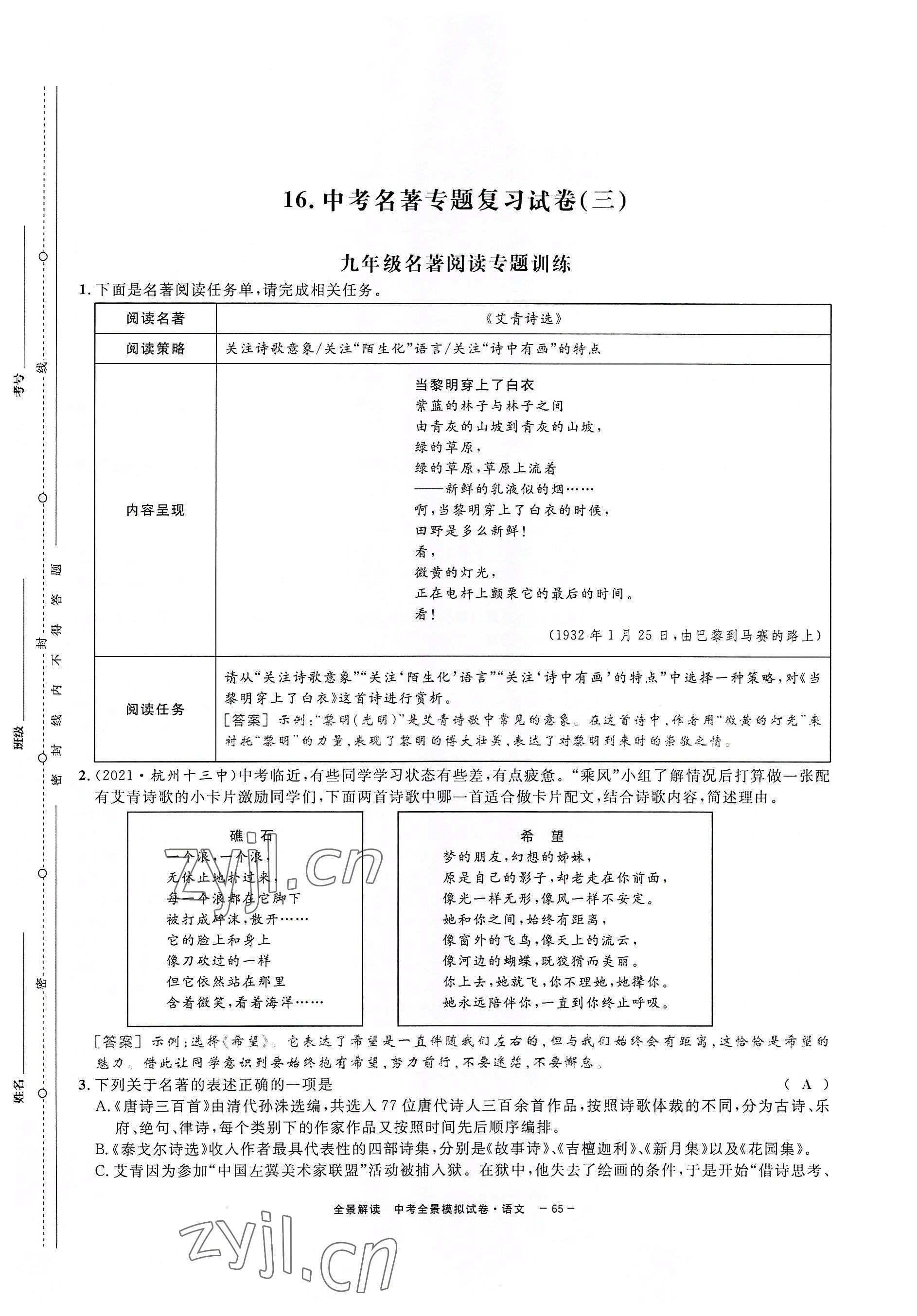 注:目前有些书本章节名称可能整理的还不是很完善,但都是按照顺序排列的,请同学们按照顺序仔细查找。练习册 2022年新课标名著微阅读语文人教版 答案主要是用来给同学们做完题方便对答案用的,请勿直接抄袭。