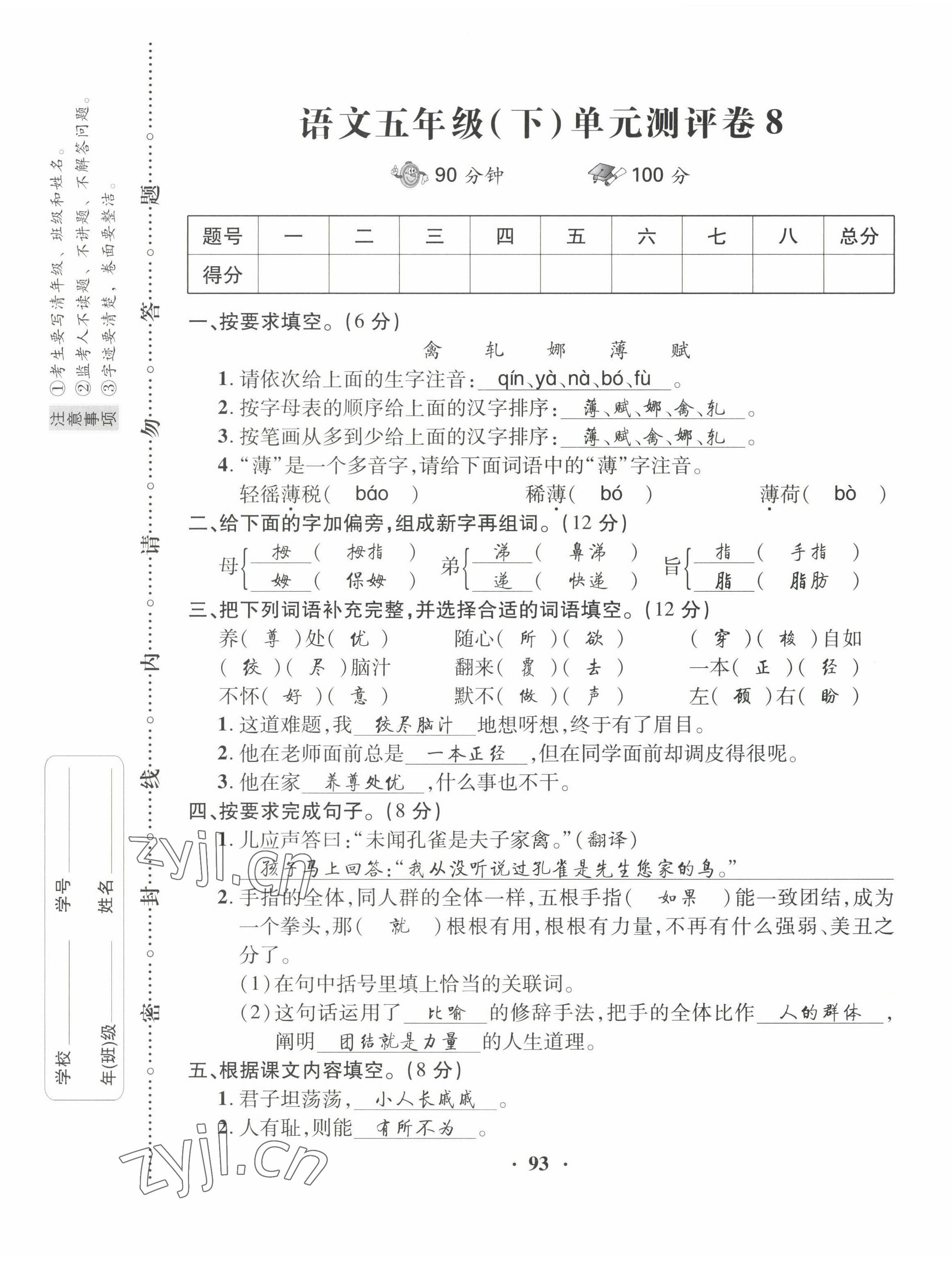 - 参考答案第8页