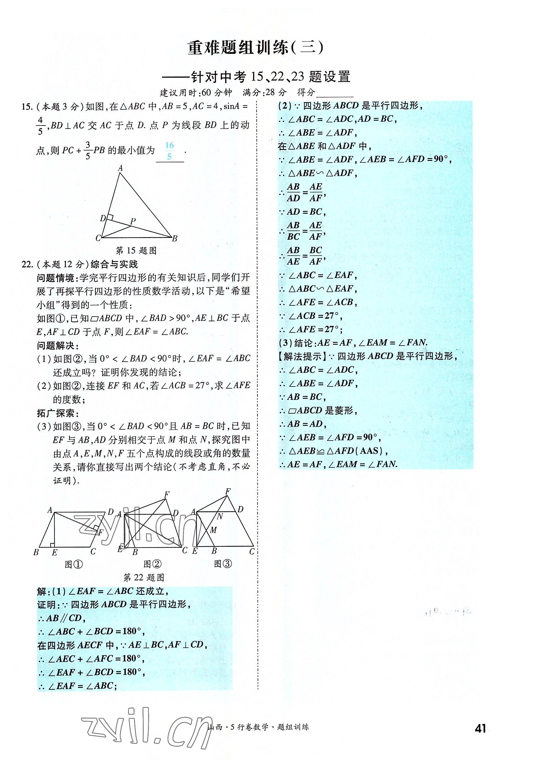 2022年一战成名5行卷数学山西专版
