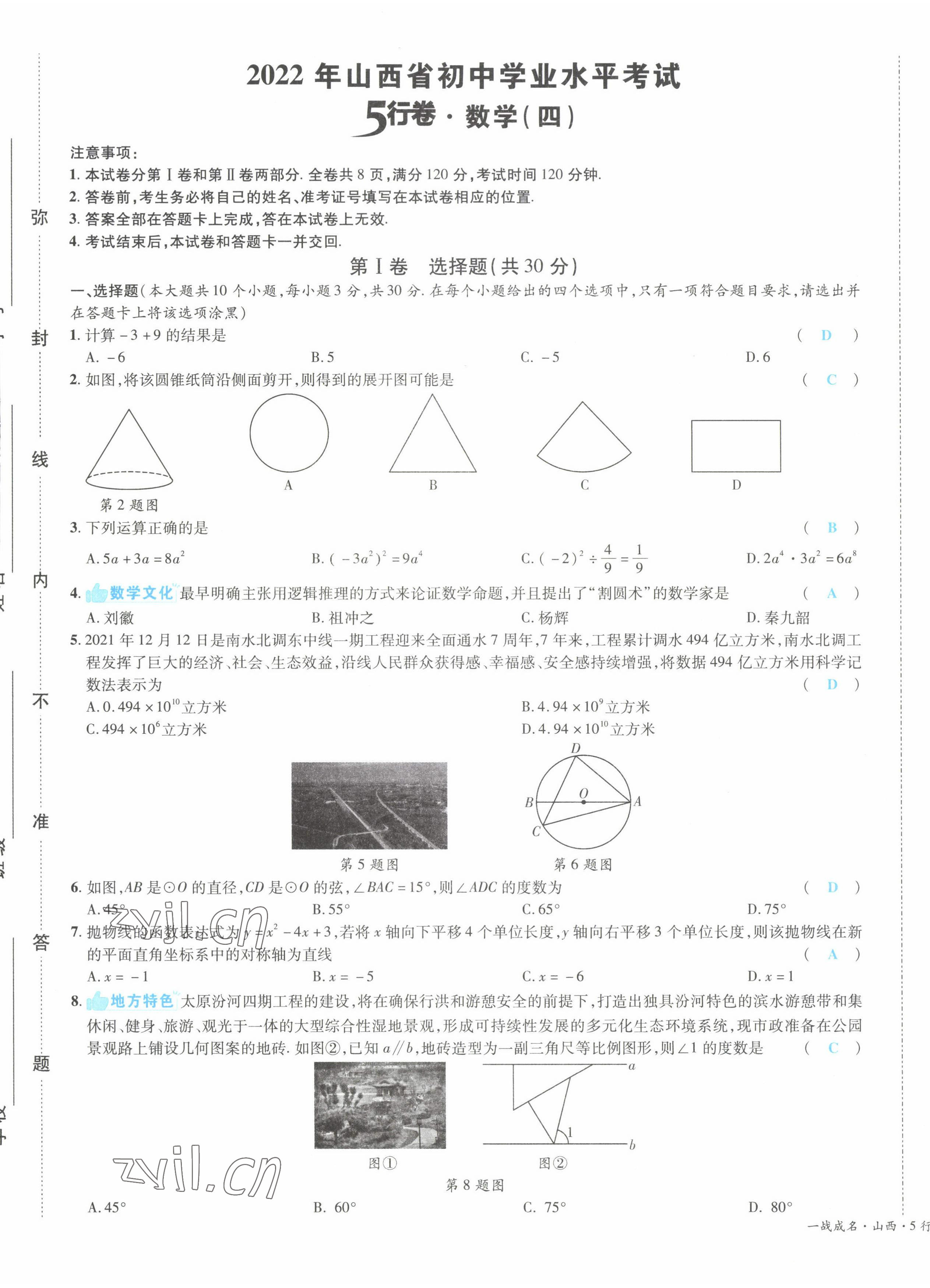 注:目前有些书本章节名称可能整理的还不是很完善,但都是按照顺序排列的,请同学们按照顺序仔细查找。练习册 2022年一战成名5行卷数学山西专版 答案主要是用来给同学们做完题方便对答案用的,请勿直接抄袭。
