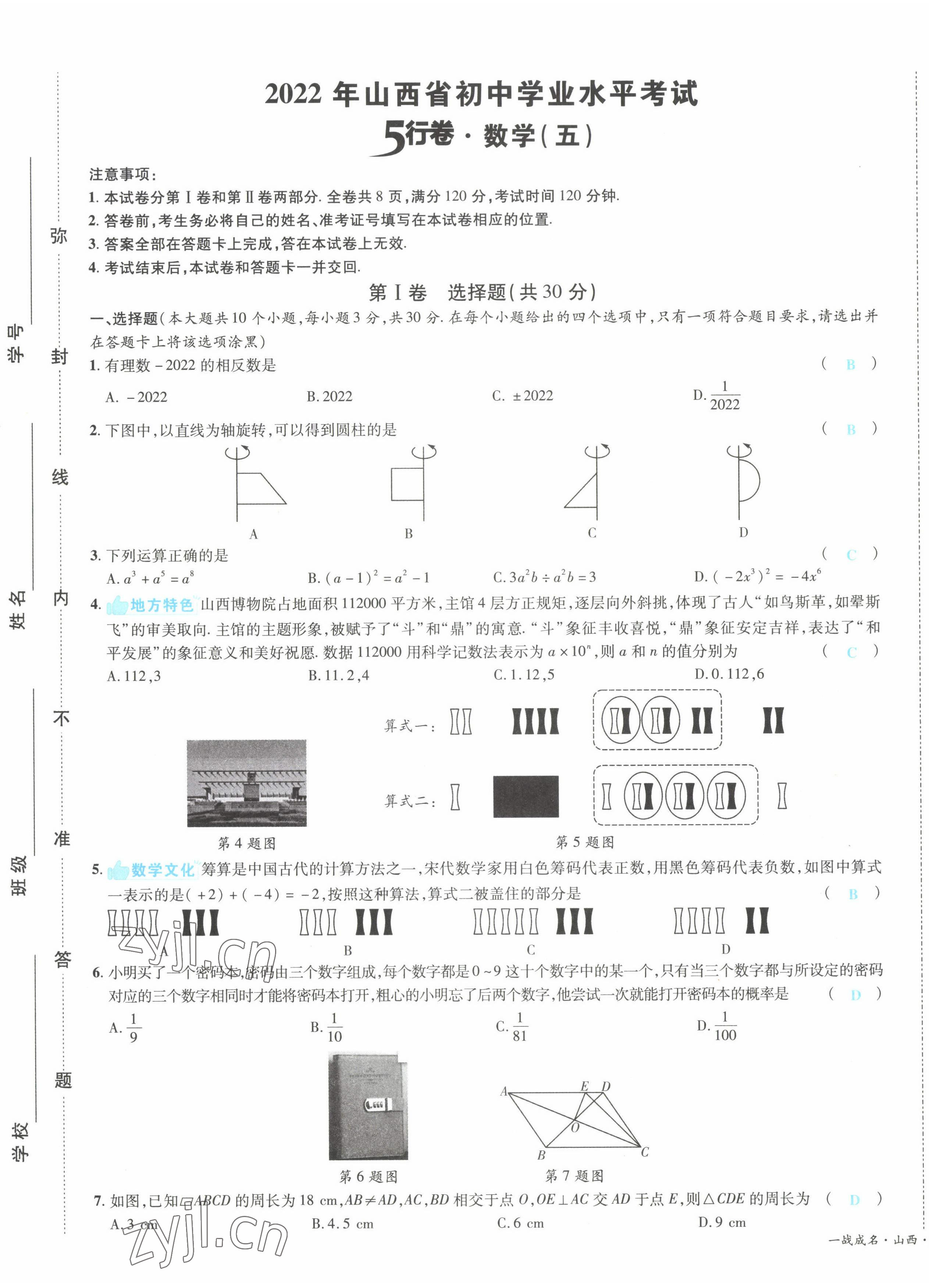 2022年一战成名5行卷数学山西专版
