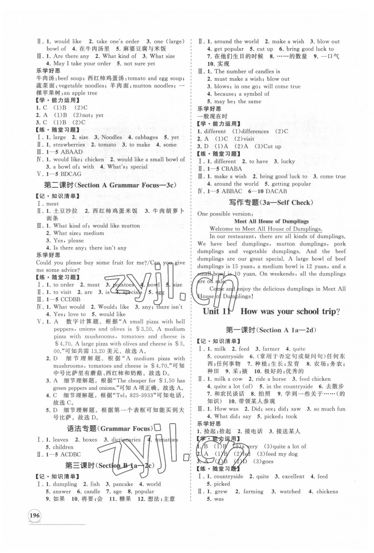 注:目前有些书本章节名称可能整理的还不是很完善,但都是按照顺序排列的,请同学们按照顺序仔细查找。练习册 2022年新课程同步练习册知行课堂七年级英语下册人教版 答案主要是用来给同学们做完题方便对答案用的,请勿直接抄袭。