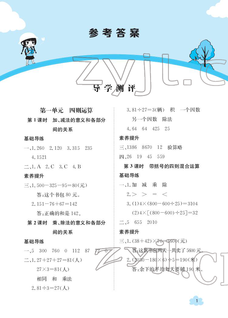 注:目前有些书本章节名称可能整理的还不是很完善,但都是按照顺序排列的,请同学们按照顺序仔细查找。练习册 2022年三段六步导学案四年级数学下册人教版 答案主要是用来给同学们做完题方便对答案用的,请勿直接抄袭。