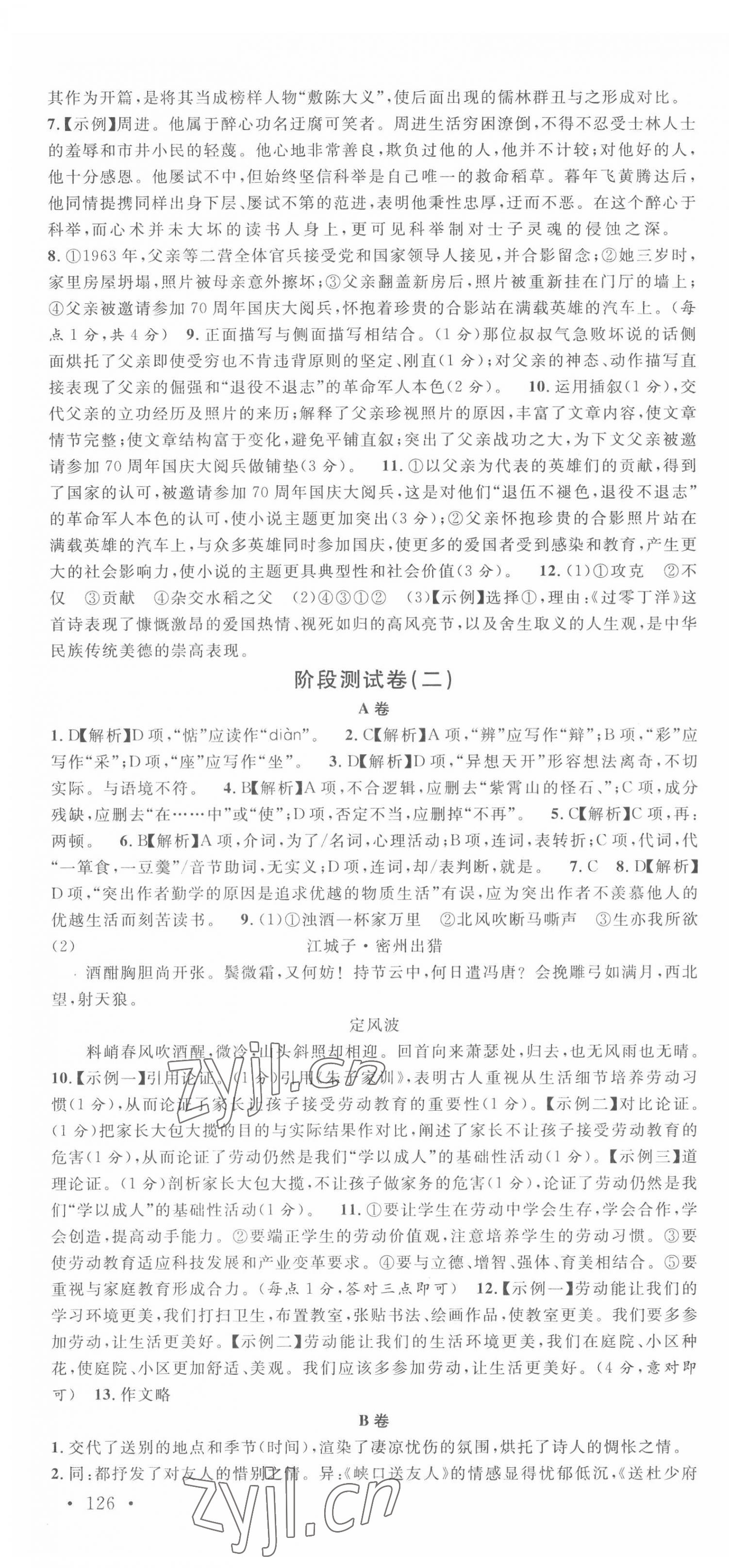 注:目前有些书本章节名称可能整理的还不是很完善,但都是按照顺序排列的,请同学们按照顺序仔细查找。练习册 2022年蓉城名校课堂九年级语文下册人教版 答案主要是用来给同学们做完题方便对答案用的,请勿直接抄袭。