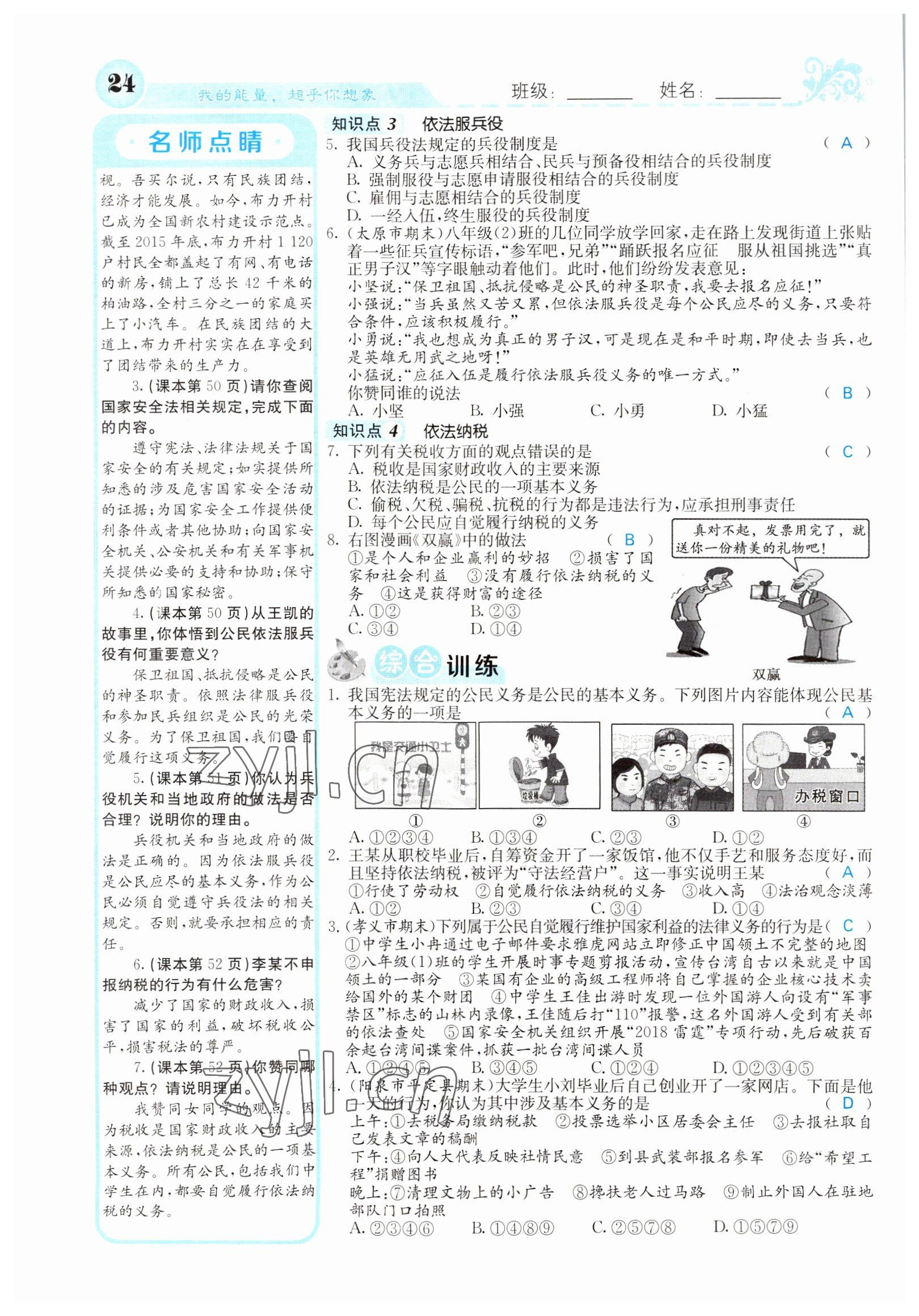 注:目前有些书本章节名称可能整理的还不是很完善,但都是按照顺序排列的,请同学们按照顺序仔细查找。练习册 2022年课堂点睛八年级道德与法治下册人教版山西专版 答案主要是用来给同学们做完题方便对答案用的,请勿直接抄袭。