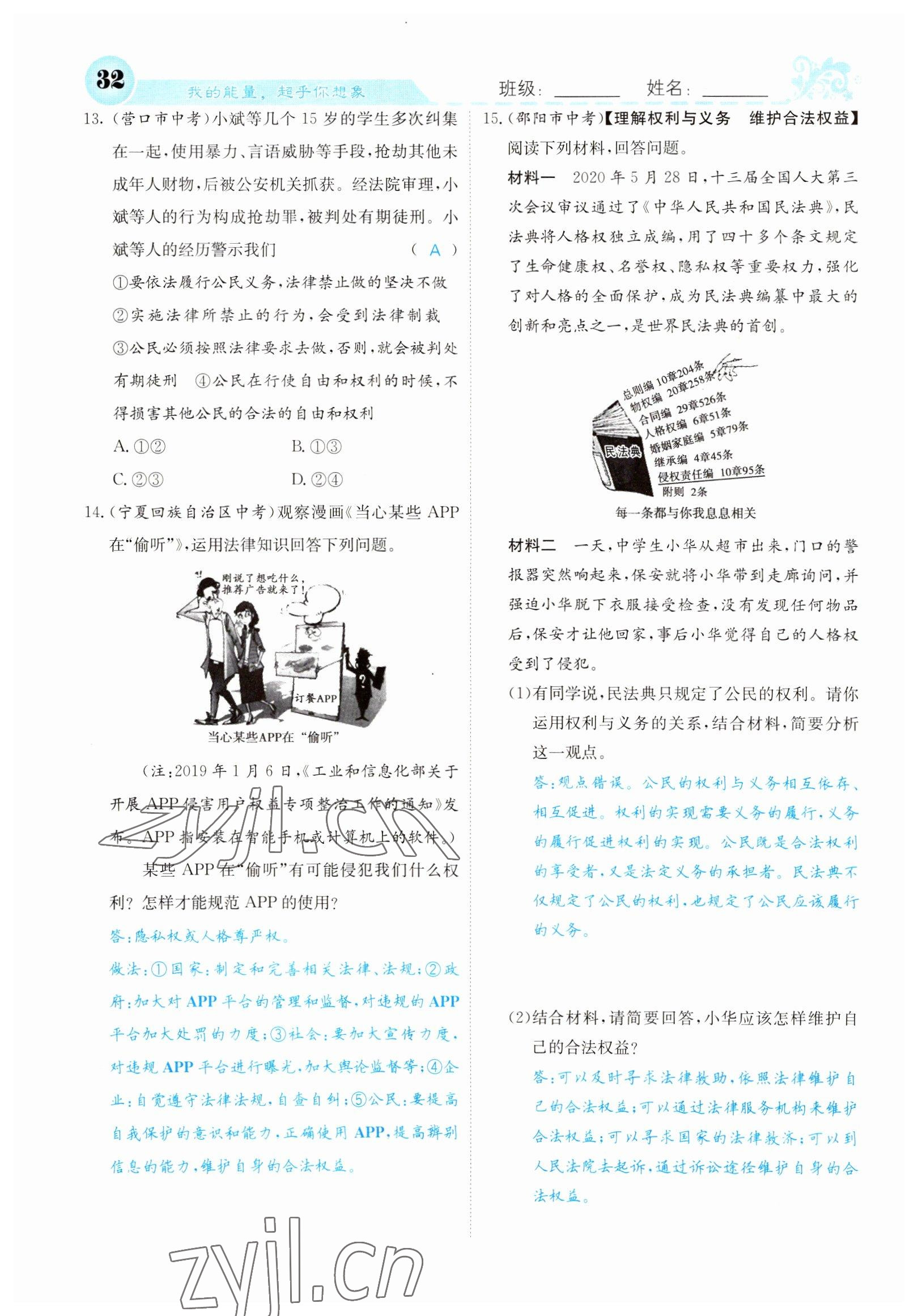 注:目前有些书本章节名称可能整理的还不是很完善,但都是按照顺序排列的,请同学们按照顺序仔细查找。练习册 2022年课堂点睛八年级道德与法治下册人教版山西专版 答案主要是用来给同学们做完题方便对答案用的,请勿直接抄袭。