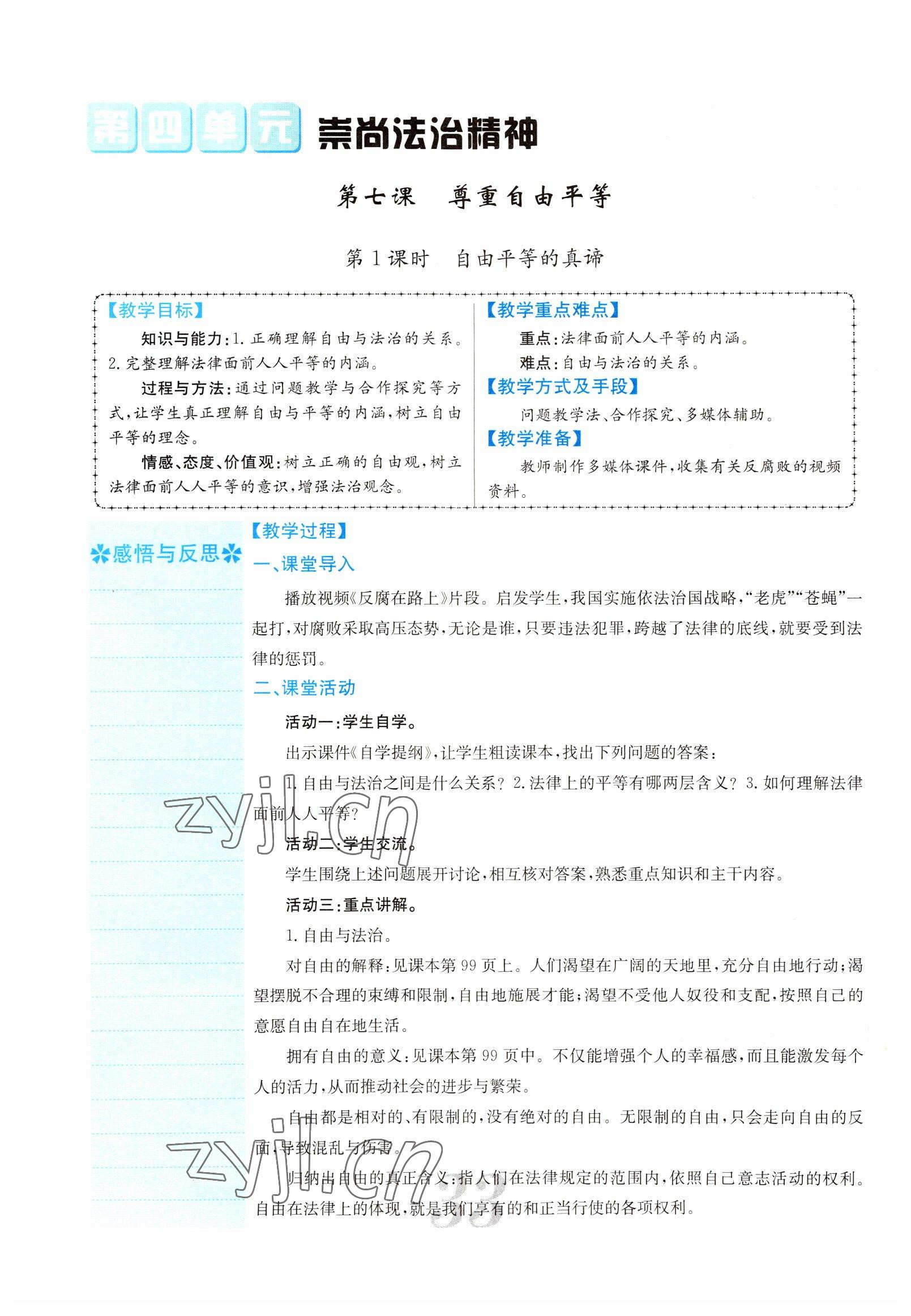 2022年课堂点睛八年级道德与法治下册人教版山西专版